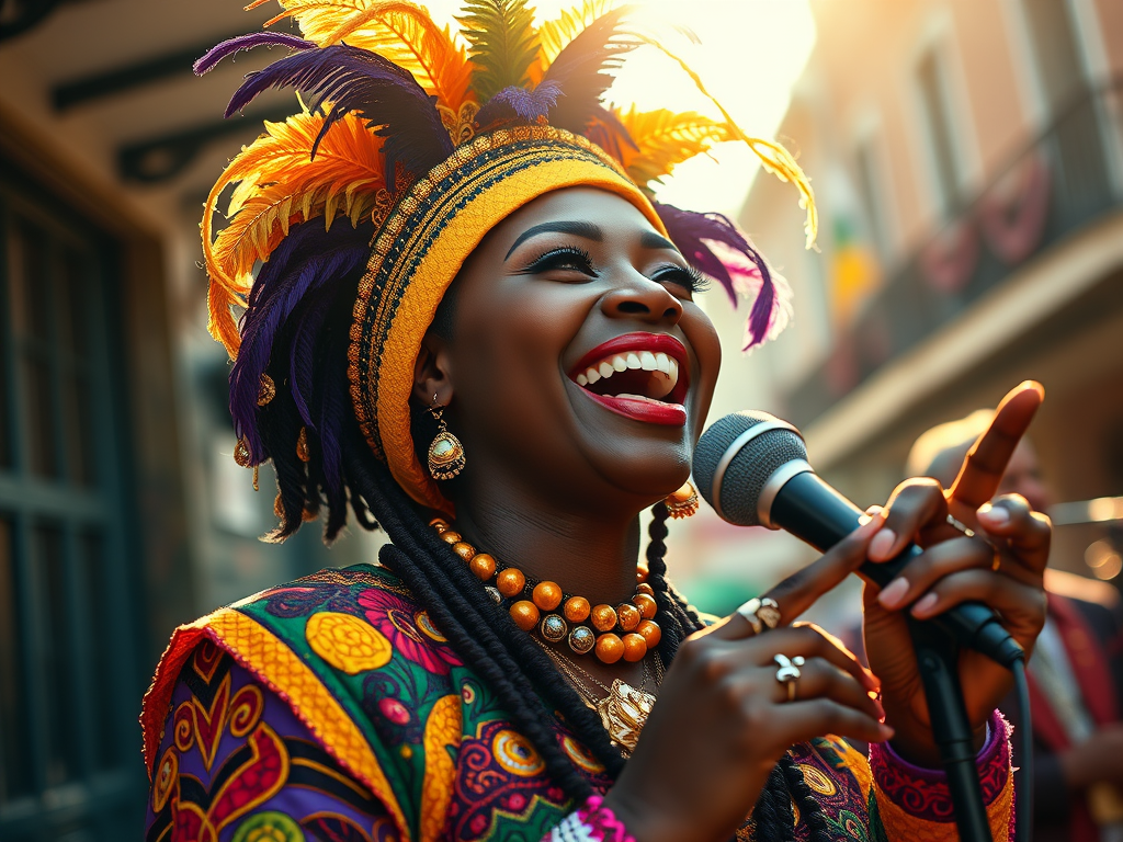 ‘I removed my Frowning Mask for a Smiling Mask as I no longer feel worried since we arrived in New Orleans,’ Jane said. ‘I did it when I stopped to listen to the beautiful woman singing on the corner,’ Jane continued. ‘The woman’s face revealed she had suffered and overcome the suffering,’ Jane mused. ‘The joy de vie of throughout the Quarter got into my soul,’ Jane said with a little dance. ‘The musicians and parade participants taught me how wonderful the gift of life is,’ Jane laughed heartily.