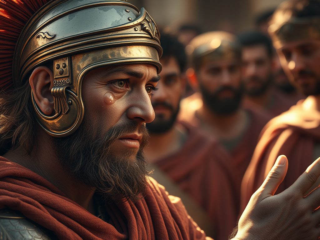 ‘Never have I seen such a man,’ the Roman Centurian said. ‘He forgave us…We did not deserve it,’ Roman Centurian said. ‘He did not want to die…he was full of life and love…care for those who had no one to care for them,’ Roman Centaurian said. ‘He had the appearance of the angels,’ the Roman Centurian observed. ‘Have we crucified the one who had come to save us?’ Roman Centurion asked.