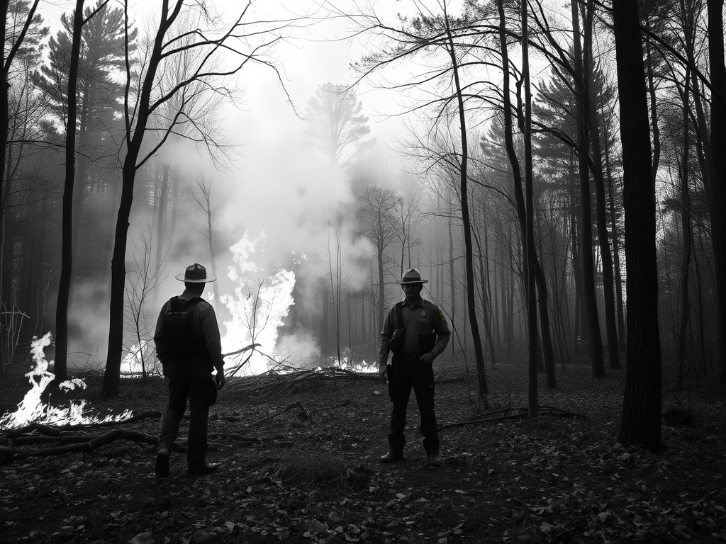 Spring is progressing. The Woods is blooming…with a controlled burn. A controlled burn is frightening if you do not know what is occurring. Smoke everywhere. Little fires throughout the forest. The Park Rangers watch attentively. One walks ahead to ensure safety. The Old Man said that the fires create a lot of smoke. The PR said yes and that there would be more before they had completed their mission.