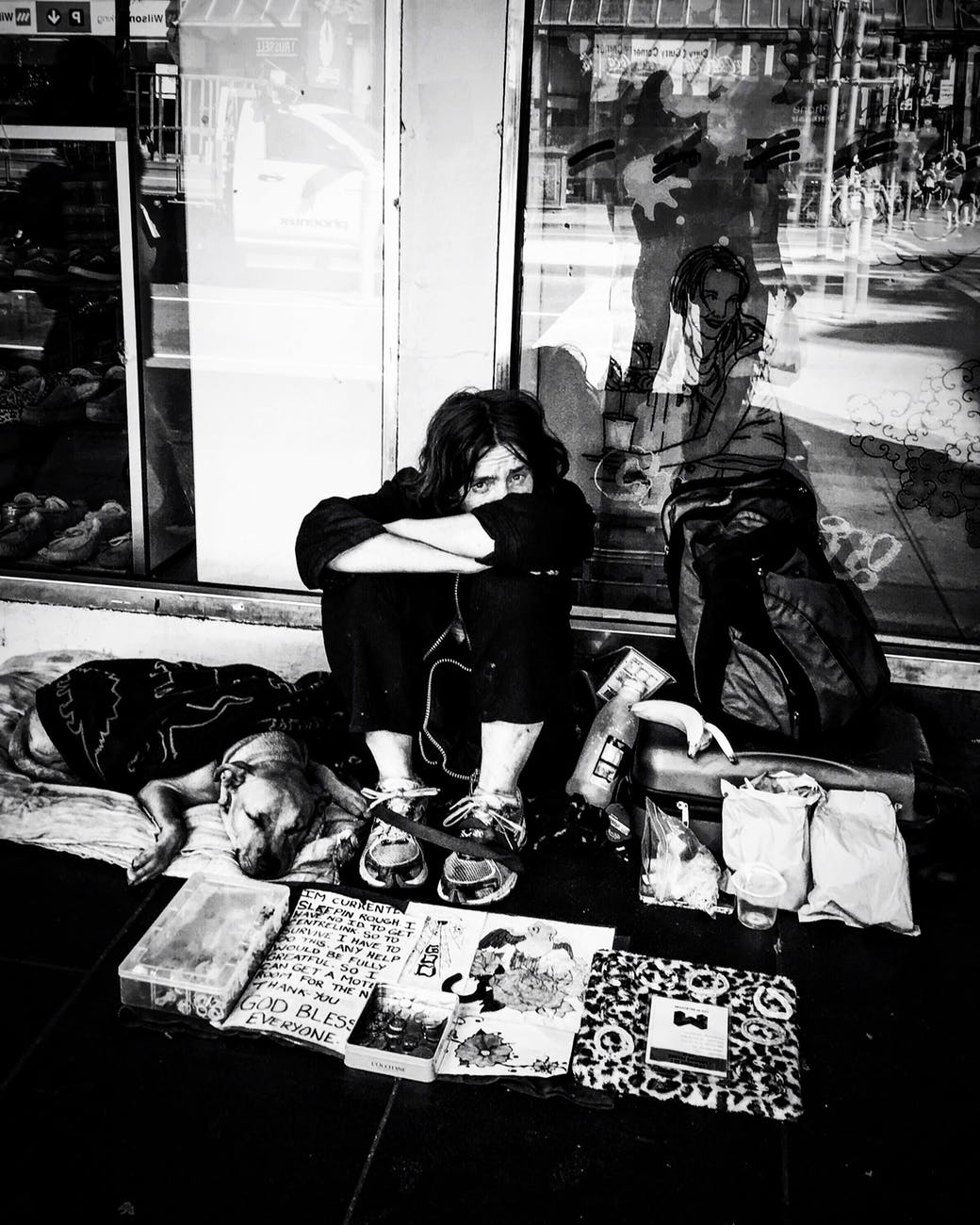 photo of person sitting near glass wall
