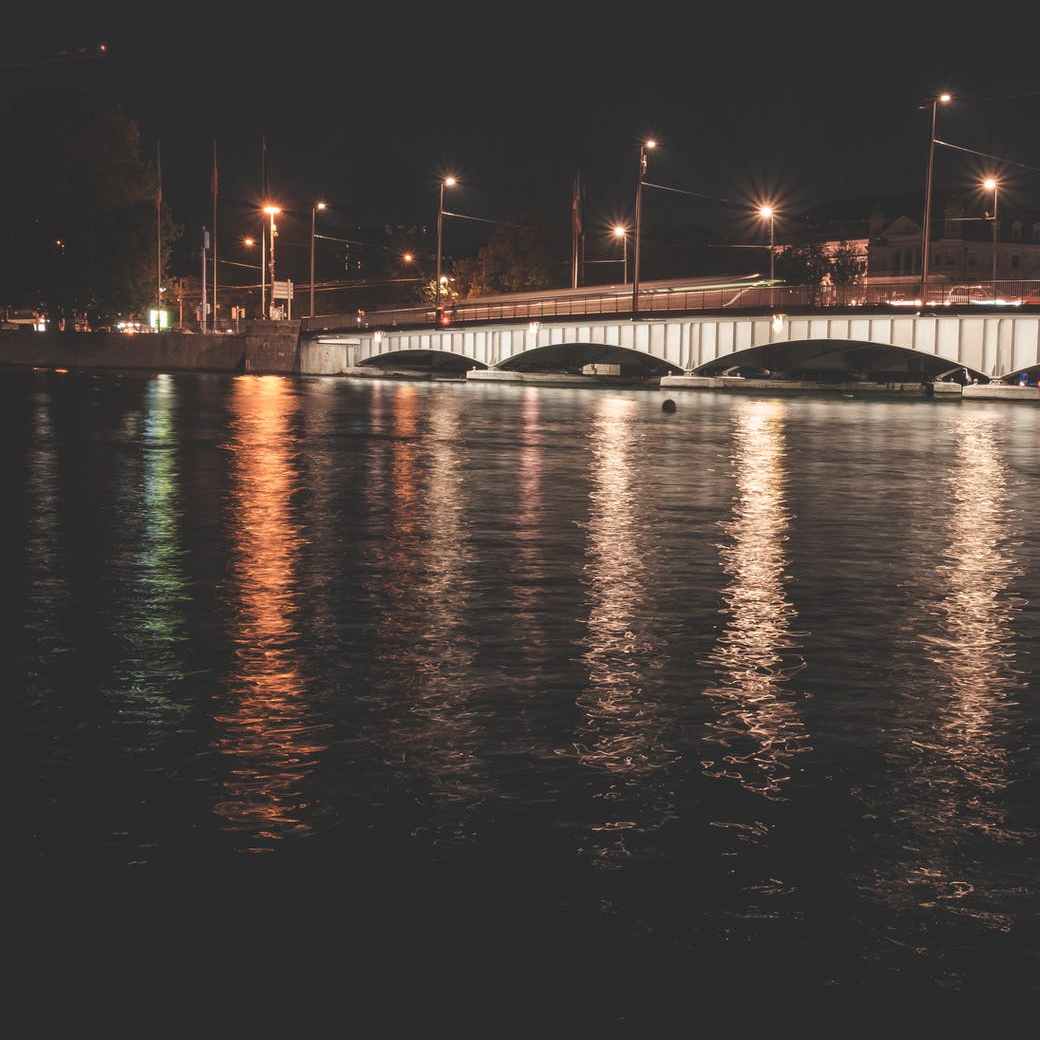 The air-bridged harbor that twin cities frame.