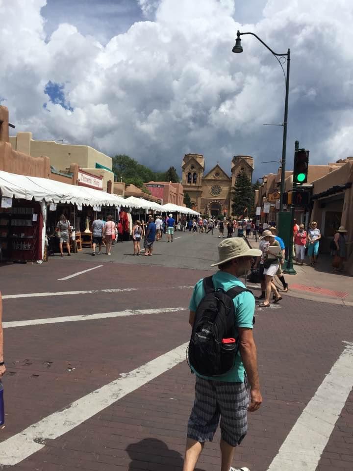 In August of 2017 we traveled to New Mexico to visit Ira Kaye and Ron. Facebook has reminded me, this week, of what a wonderful time that we had visiting so many picturesque places in and around Santa Fe. There was a photo of me on the beautiful grounds of their condo. I looked rather dapper for an old guy with my Irish hat on and my seersucker shorts. The facility had the most wonderful hot tub that Ron and I visited twice during the week that we were there. There was also a golf course on the grounds of the condo association and a wonderful full bar for the occasional libation. My buddy, Carson, led us to the best Margaritas in Santa Fe…and we sipped them slowly to ensure maximum pleasure and enjoyment. Santa Fe is an artistic community and the residents and population are easy going people that are easy to like. They see the world from more of a spiritual side rather than from the side of how much money can I accrue.
