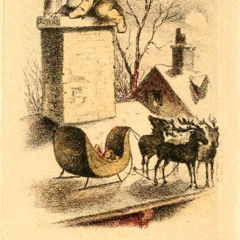 Not a creature was stirring, not even a mouse; The stockings were hung by the chimney with care, In hopes that St. Nicholas soon would be there; The children were nestled all snug in their beds; While visions of sugar-plums danced in their heads; And mama in her kerchief, and I in my cap, Had just settled our brains for a long winter’s nap, When out on the lawn there arose such a clatter, I sprang from my bed to see what what was the matter. Away to the window I flew like a flash, Tore open the shutters and threw up the sash. The moon on the breast of the new fallen snow, Gave a luster of midday to objects below, When what to my wondering eyes did appear, But a miniature sleigh and eight tiny reindeer, With a little old driver so lively and quick, I knew in a moment he must be St. Nick. More rapid than eagles his coursers they came, And he whistled and shouted and called them by name: