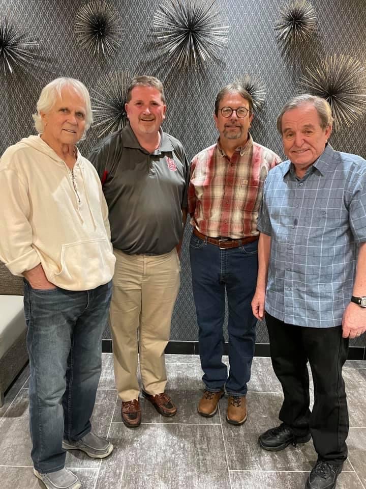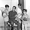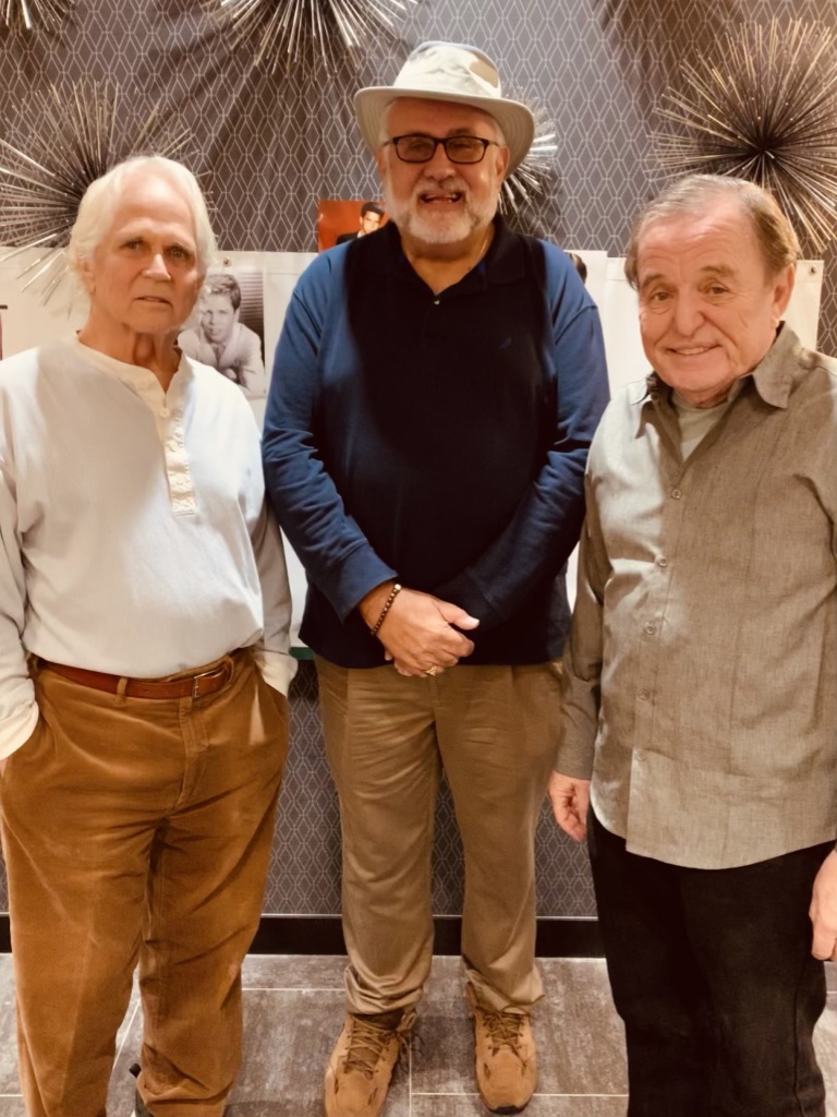I believe that the two men in the middle are two of, ‘My Three Sons,’ which was a popular television show of the 60’s.