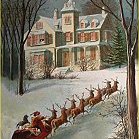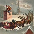 Now Dasher! now, Dancer! now Prancer and Vixen! On, Comet! on, Cupid! on, Donner and Blitzen! To the top of the porch! To the top of the wall! Now dash away! dash away! dash away all! As leaves that before the wild hurricane fly, When they meet with an obstacle, mount to the sky; So up to housetop the coursers they flew With the sleigh full of toys, and St. Nicholas too-And then, in a twinkling, I heard on the roof The prancing and pawing of each little hoof. As I drew in my head and was turning around, Down the chimney St. Nicholas came with a bound. He was dressed all in fur from his head to his foot, And his clothes were all tarnished with ashes and soot; A bundle of toys he had flung on his back, And he looked like a peddler just opening his pack. His eyes-how they twinkled! his dimples, how merry! His cheeks were like roses, his nose like a cherry! His droll little mouth was drawn up like a bow, And the beard on his chin was as white as the snow; The stump of a pipe he held tight in his teeth, And the smoke, it encircled his head like a wreath; He had a broad face and a round little belly That shook when he laughed like a bowl full of jelly. He was chubby and plump, A right jolly old elf, And I laughed when I saw him, in spite of myself; A wink of his eye and a twist of his head Soon gave me to know I had nothing to dread; He spoke not a word, but went straight to his work, And filled all the stockings; then turned with a jerk, And laying his finger aside his nose; And giving a nod, up the chimney he rose; He sprang to his sleigh, to his team gave a whistle, And away they all flew like the down of a thistle. But I heard him exclaim, ere he drove out of sight-