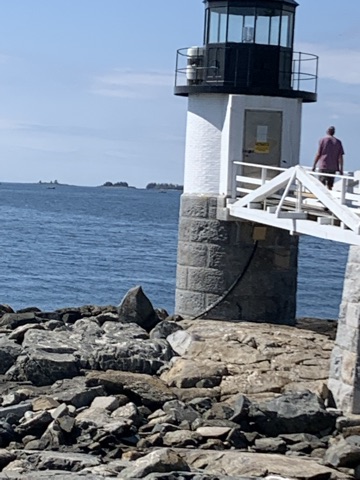 We met one of the friendly staff of the Ocean Point Inn as we were exploring Boothbay. She greeted us by enthusiastically saying, ‘Hi, Penthouse People!’ We liked this moniker very much as we were staying in lodging that was somewhat removed from the others and could only be accessed by climbing a flight of stairs to reach the front door…and then climbing another to reach everything but the two bedrooms and restroom. The living room and the kitchen and deck were on the second floor of the dwelling.
