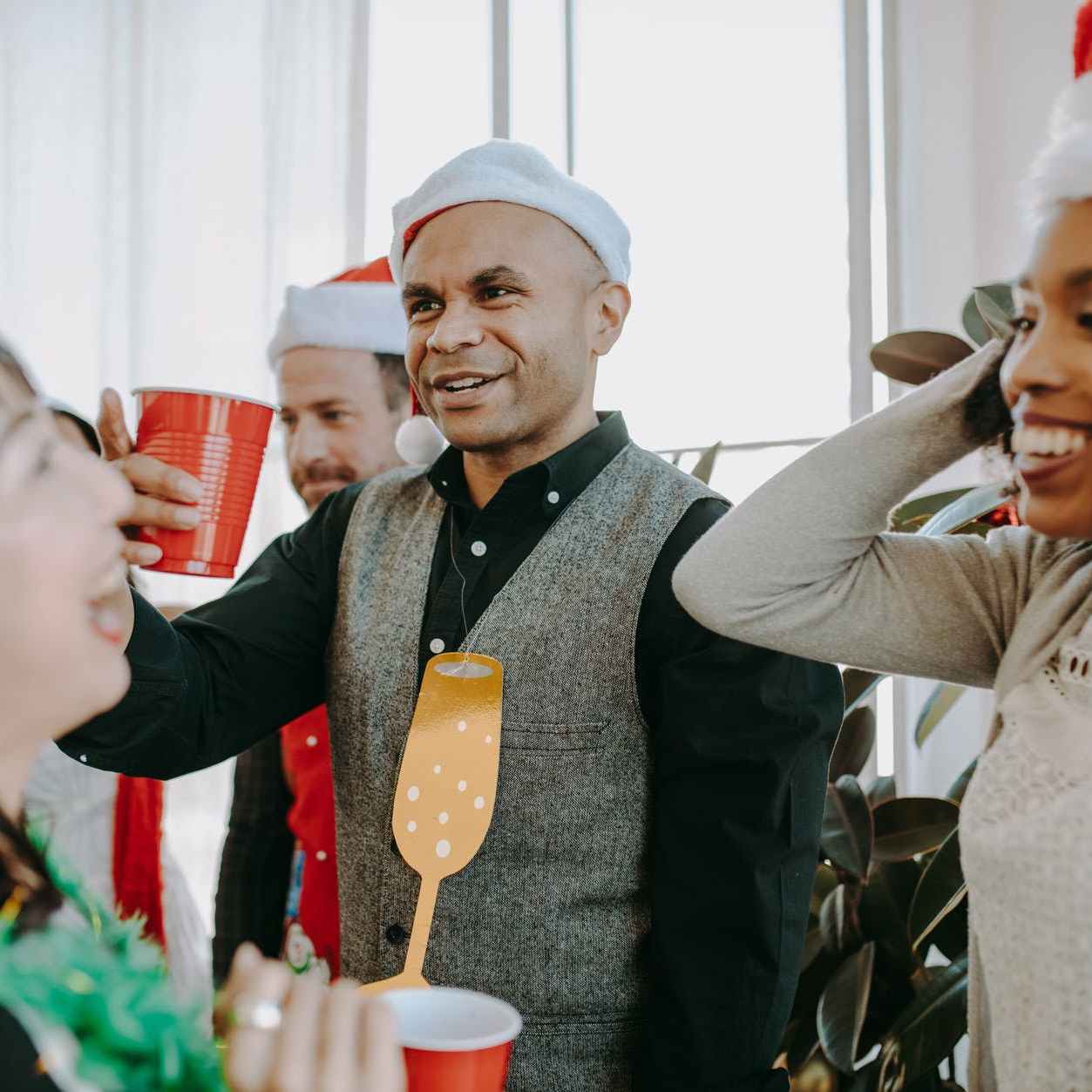 Jane was excited as she stood by the door of the Assembly Hall just before the Party was to begin. She told Billy B., as he walked up, that Santa could not make it…as he was down with the flu. ‘What are we going to do, Jane asked? Chet winked and said, ‘We will improvise!’ So the fun began with the authentic English dinner and was finished with the Flaming Plum Pudding. Throughout the three-course meal, Billy B. had continued to pour his guests more of the wonderful punch. When the music began it was, ‘Santa Claus is coming to town,’ and indeed at that moment the large double doors swung open and in came the happiest Santa that anyone in the auditorium had ever seen… Walking in front of Santa Claus was Daryl’s Dad, The Wiz, as he led him to the great chair that had been provided for Bill Winters…before he became ill. In Mr. Claus’s entourage were 12 elves and 12 reindeer…who were doing a lot of snorting and pawing at the floor of the magnificent room. Santa called out to Chet, ‘Bring me a cup of your outstanding Christmas Punch…Chet!’ Chet gave him a 12-ounce tumbler full…and he brought the pitcher that had enough of Lanny’s fortified Punch…for 3 more refills…