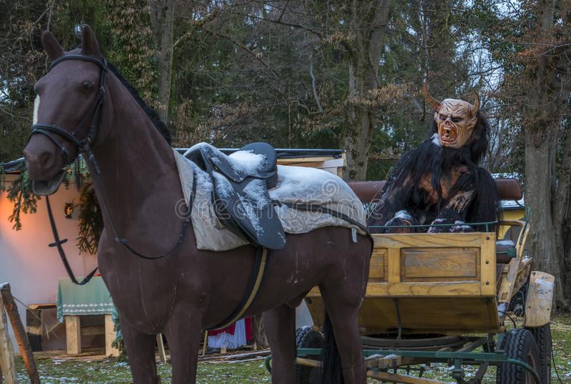 ‘Krampus is a horned figure in Alpine folklore who during the Christmas Season, scares children who have misbehaved. He assists St. Nicholas…
