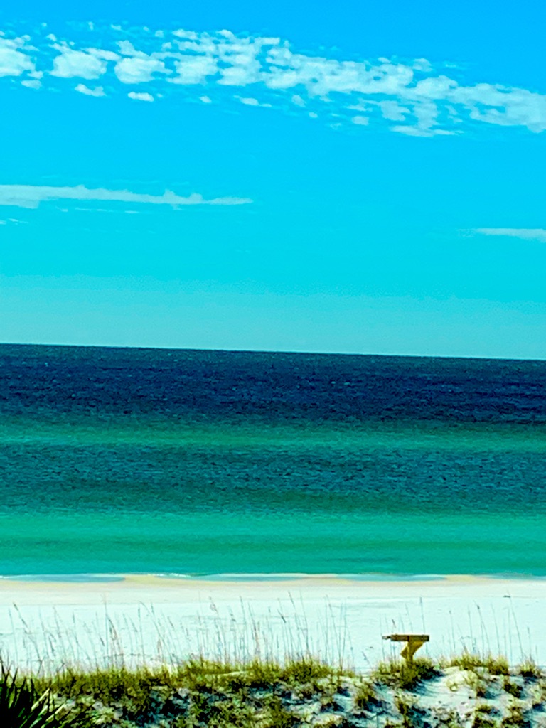 The Great Florida Holiday…has ended. We had a lovely visit with our family…Ira Kaye and Ron. They are such wonderful hosts. We have been visiting Miramar Beach for 12 years and the time has flown by. I thought that I was old…12 years ago…now I know that I am. Destin and the surrounding communities are wonderful and serene places to spend time in. Of course, the Ocean is a constant reminder of the unparalleled beauty of our Home. I never tire of observing the marking of time on earth’s clock…by the neverending waves coming to shore.