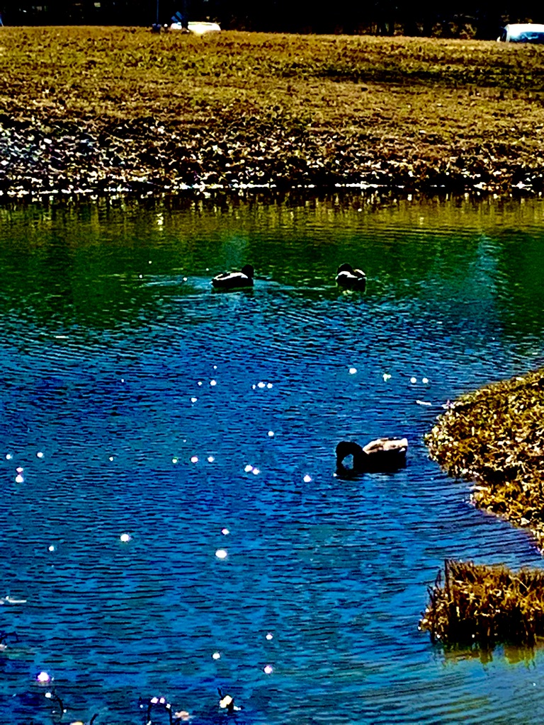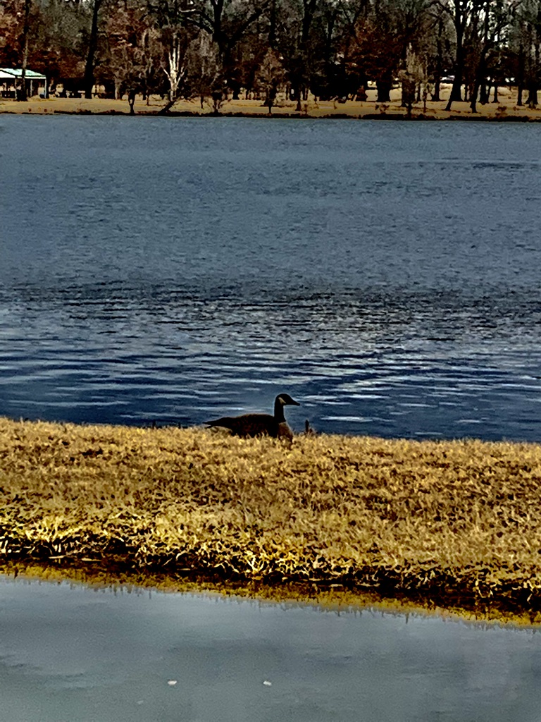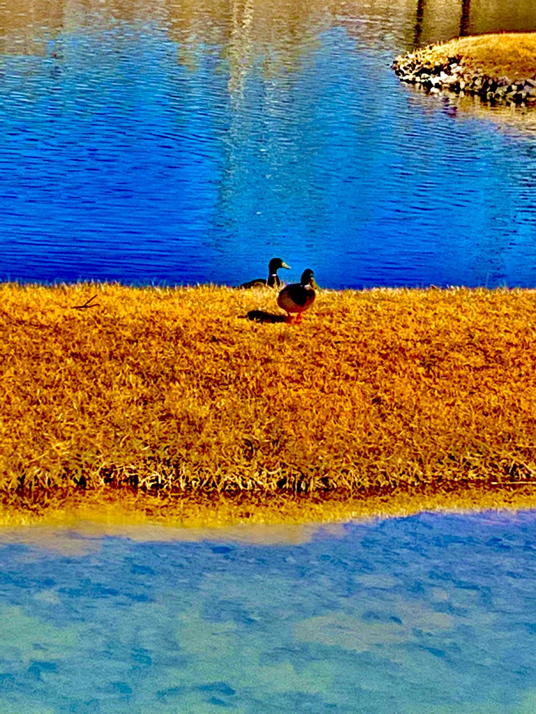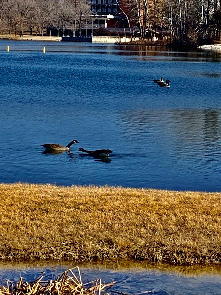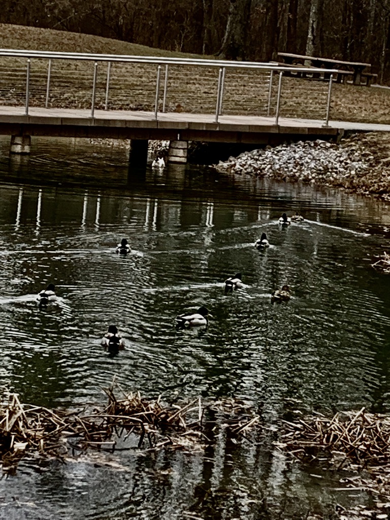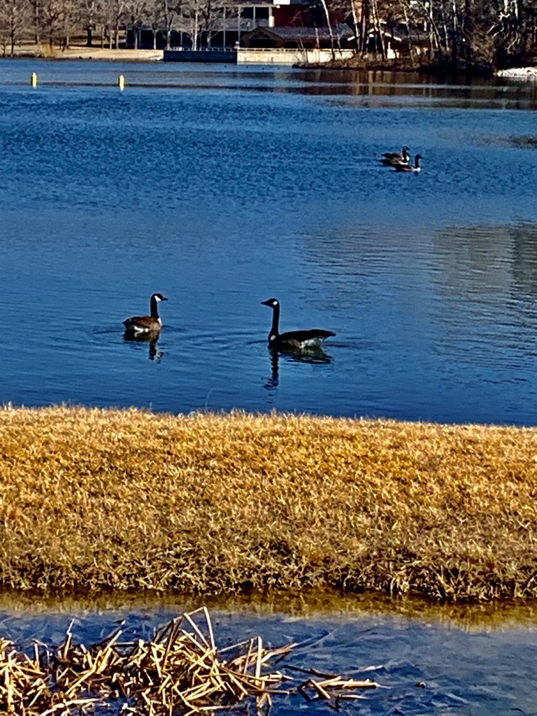 It is a lovely Valentines’ Day in Carbondale, Illinois. We took Mylo for his first visit to the Vet…he did well and captured the hearts of all of the women there… He is quite a hit with the ladies! The temperature is in the 40s today and is forecast to rise to the 60s tomorrow. The geese have moved on from Campus Lake but I did see two serene ducks enjoying the warmer climate.