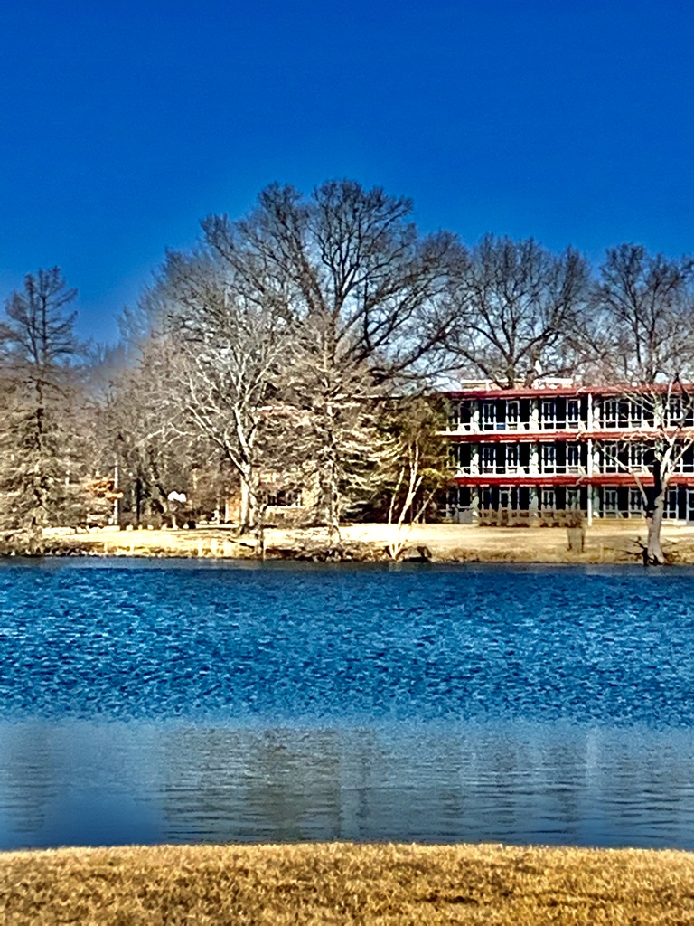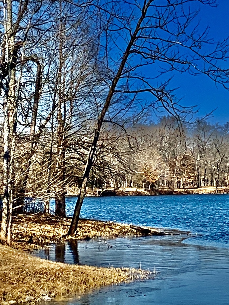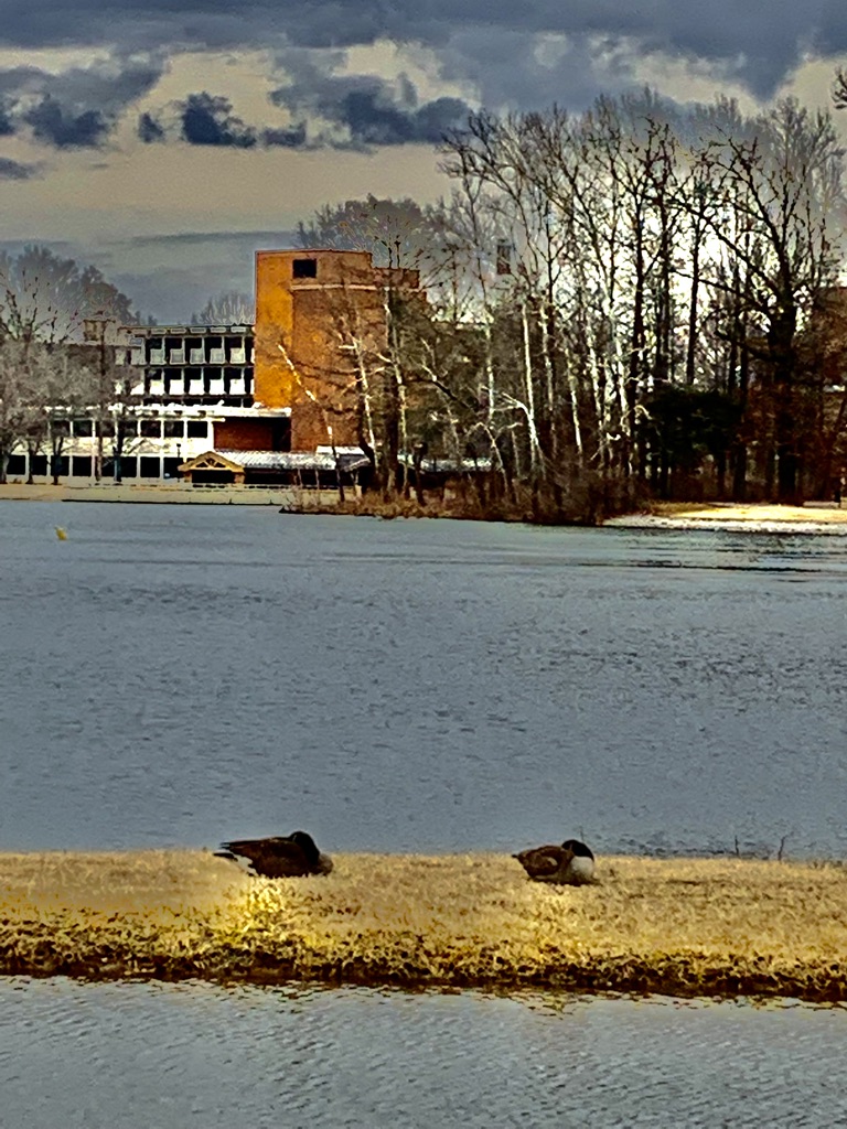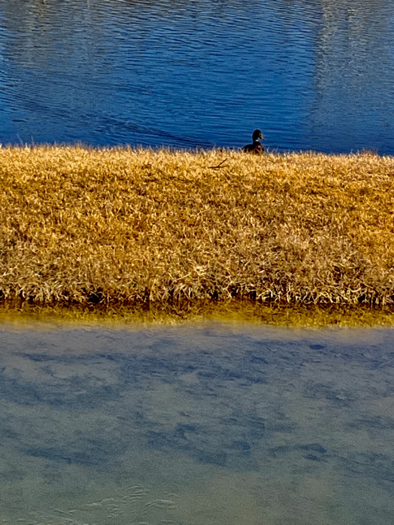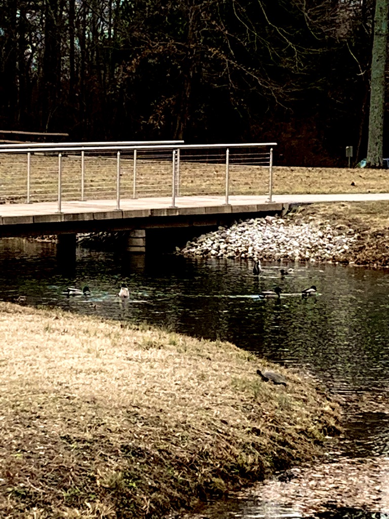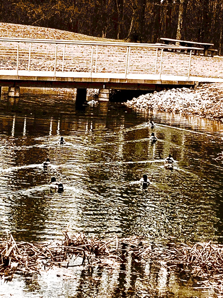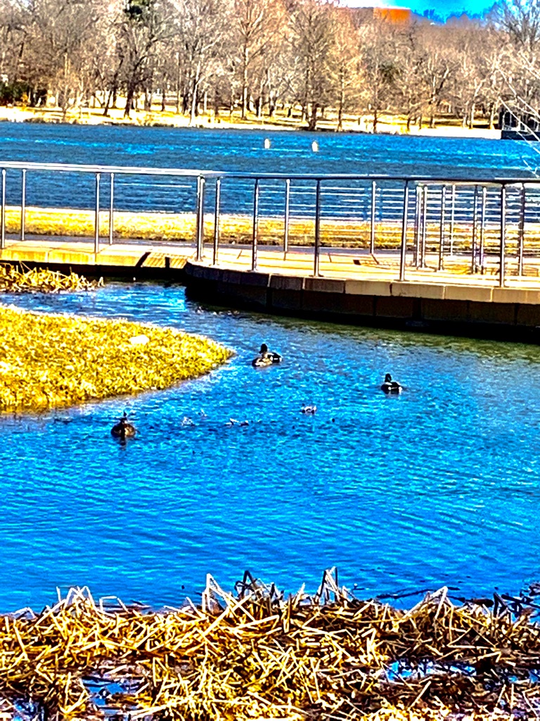 It is a lovely Valentines’ Day in Carbondale, Illinois. We took Mylo for his first visit to the Vet…he did well and captured the hearts of all of the women there… He is quite a hit with the ladies! The temperature is in the 40s today and is forecast to rise to the 60s tomorrow. The geese have moved on from Campus Lake but I did see two serene ducks enjoying the warmer climate.