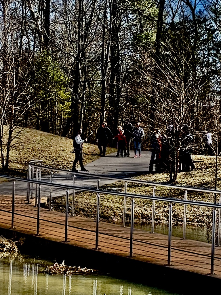 Spring has sprung in Little Egypt…but not permanently. Yesterday I was at Campus Lake and a Merry Band of Minstrels was singing and dancing and filming it all for the internet. They added joy to the lovely day of temperate temperature and lovely blue Lake water and the swimming ducks and the lone Goose who surveilled the scene. Today the rain clouds have moved in but the rain has yet to begin. Mylo is enjoying ‘Rough-Housing’ with his mommy. He is a provider of a plethora of kisses and some little bites as well.