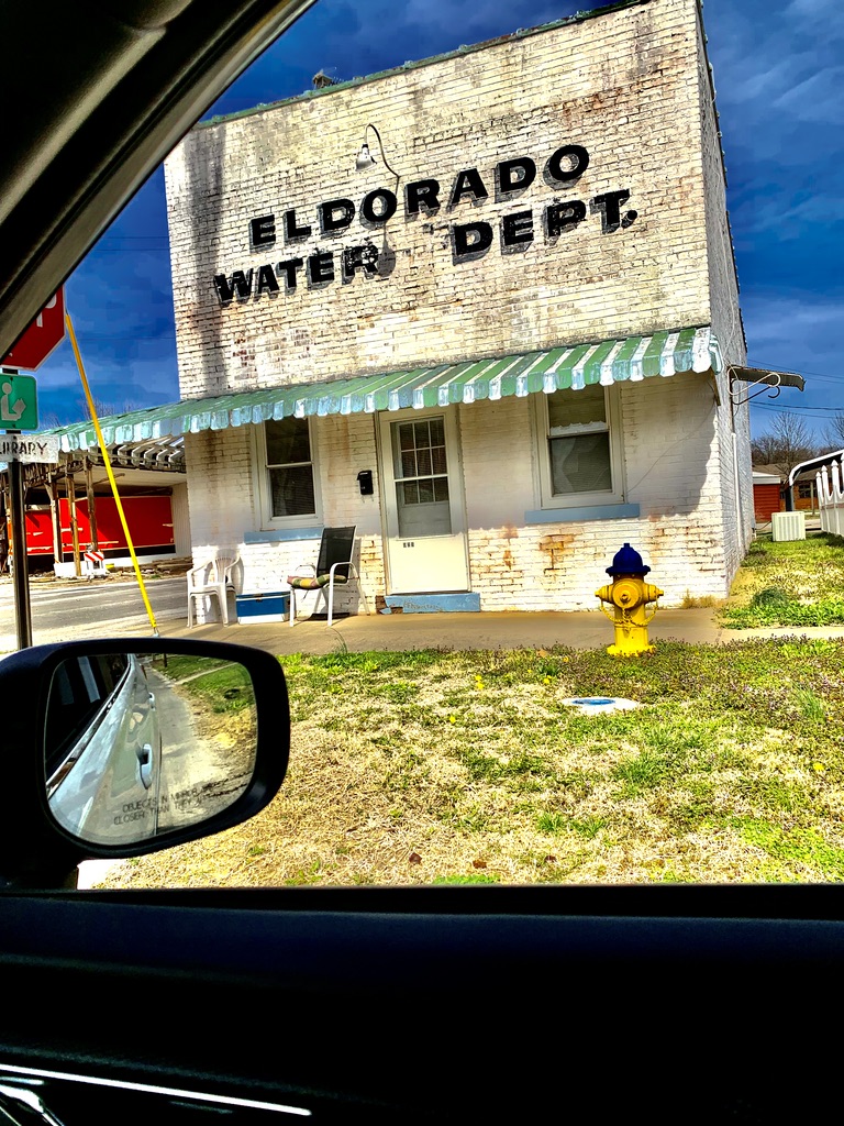 I visited Eldorado…yesterday. It had been more than 20 years since I walked the streets of the city. I recall when the parking was stripped on the Town Square for cars to park diagonally and it was somewhat difficult for two cars to pass each other between the parked automobiles that were partially in the street. I photographed the old city hall which is now apparently a museum. My uncle Bill was a police officer there…many years ago.