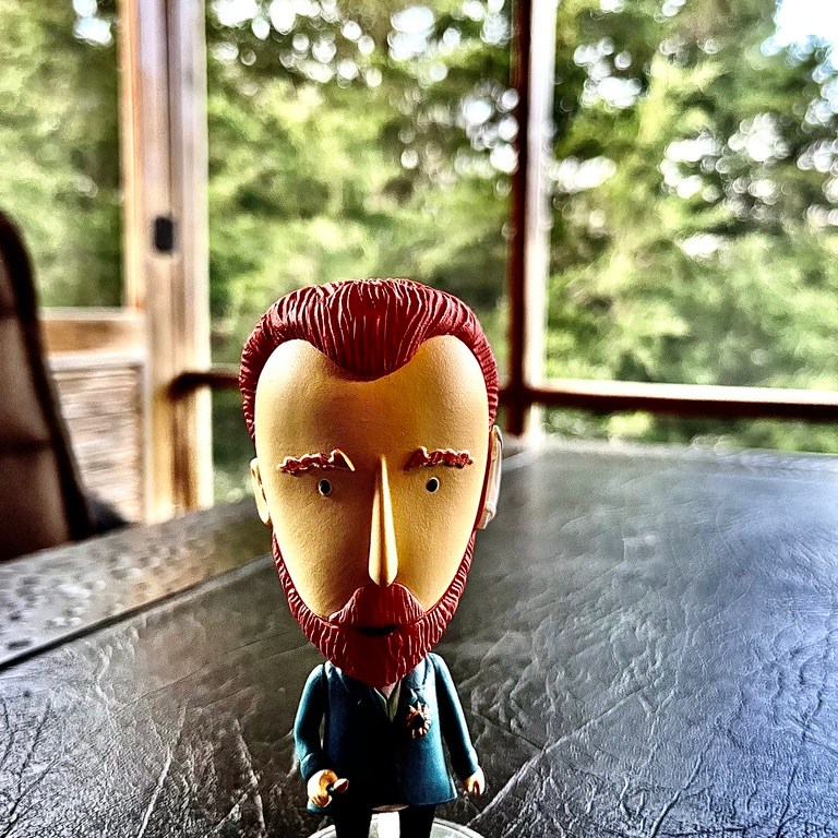 I love a good action figure and Jonathon, Aaron, and MJ know it. Vincent van Goghs’ work is captivating to me. I often wonder if he saw that which he painted in the surreal way he placed the subject on his canvas. We visited the Musee d’Orsay in Paris in 2012. There was a large room in the museum that was dedicated to Vincent exclusively. What a feast for the senses in seeing all those Works gathered in one place! It was extremely hot and very crowded with people…but the experience was to die for…as my buddy Ron often says.