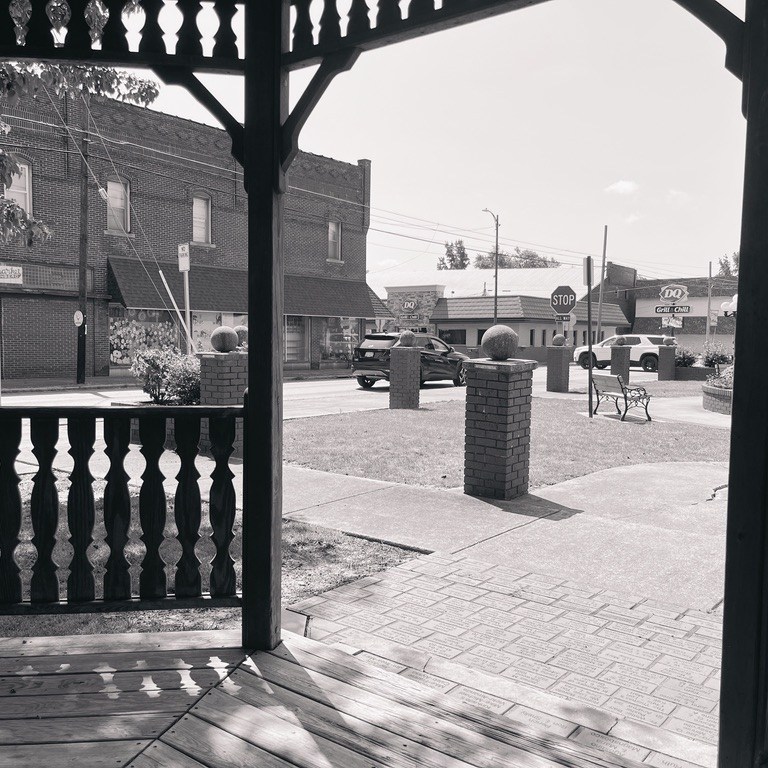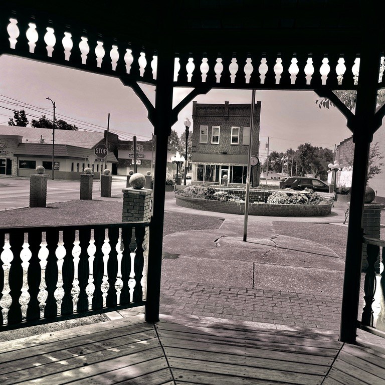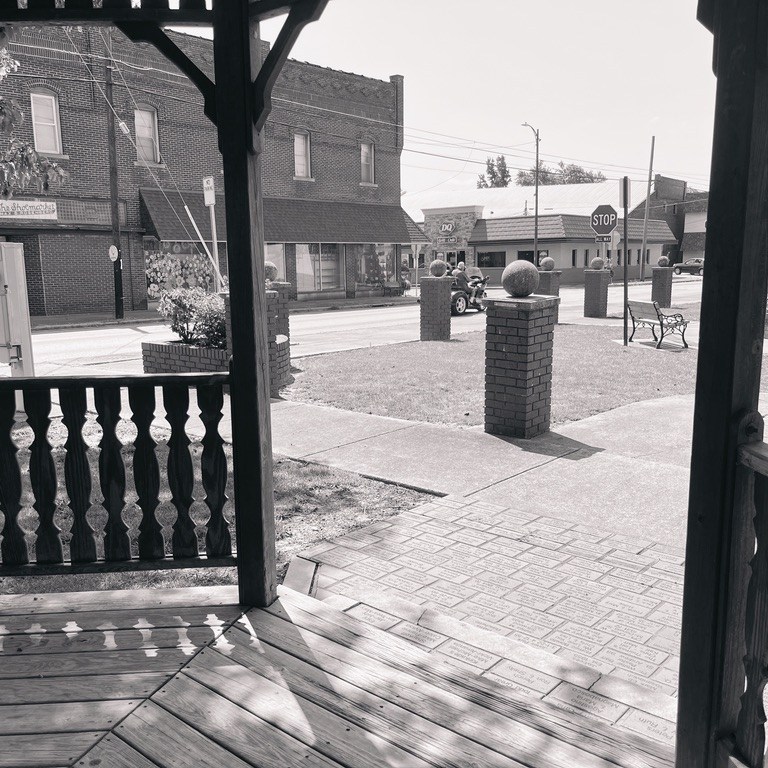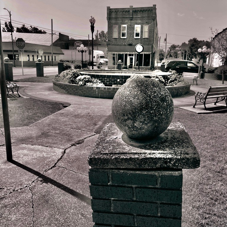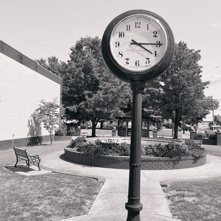 Right now it feels like 115 degrees outside. It is 95 degrees. I have been taking photos of my home for most of my life…Southern Illinois. I have noticed over this past week…when I am snapping my pictures…I do not see many people…other than those in their air-conditioned automobiles. I was in Cristopher, Illinois today and did see a group of kids on their bicycles not long before I departed. The vision of Southern Illinois University @ Carbondale was to be an international university that first reached out to coal mining towns of Little Egypt. Dr. Delyte Morris had the dream of building a world-class School in the farmland and rolling hills of the poorest and most economically deprived region of Illinois. Each of the little towns and villages that I visit has its’ own personality and customs and cohesiveness among its’ citizens. Much as a city such as St. Louis or Chicago have communities within the different blocks and locations in the city in which they live. Communities are wonderful and yet a bit like islands in the desert. There are, however, some similarities in the affections of my fellow Southern Illinoisans. For instance, I have photographed several huge clocks that are usually in a well-groomed and flowery rest area in the town. There are also not only all of the main-line old and lovely denominational churches…but many store-front churches that are apparently non-denominational or fundamentalist. In almost every town that I have visited there are a War Memorial and a stone carving that lists the members of the community that have died for their country.