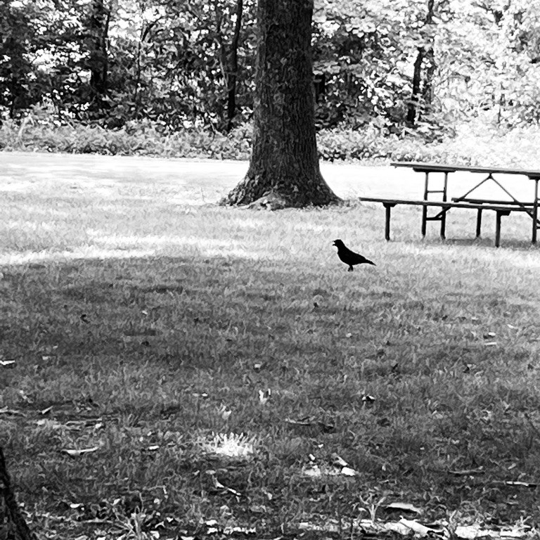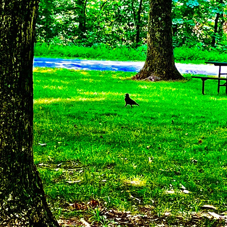 The heat is breaking…a little. The temperature is currently 85 degrees but it feels like 96 degrees. For the past few days, the heat factor has been 110 degrees and above. It has felt like a sauna. Did you know that crows can mimic human speech mush like parrots? As I sat at a picnic table at Giant City State Park today…I wondered if the half dozen crows that were standing around on the ground when I arrived…and then slowly flew into the trees when I got out of the Forester…were discussing me?