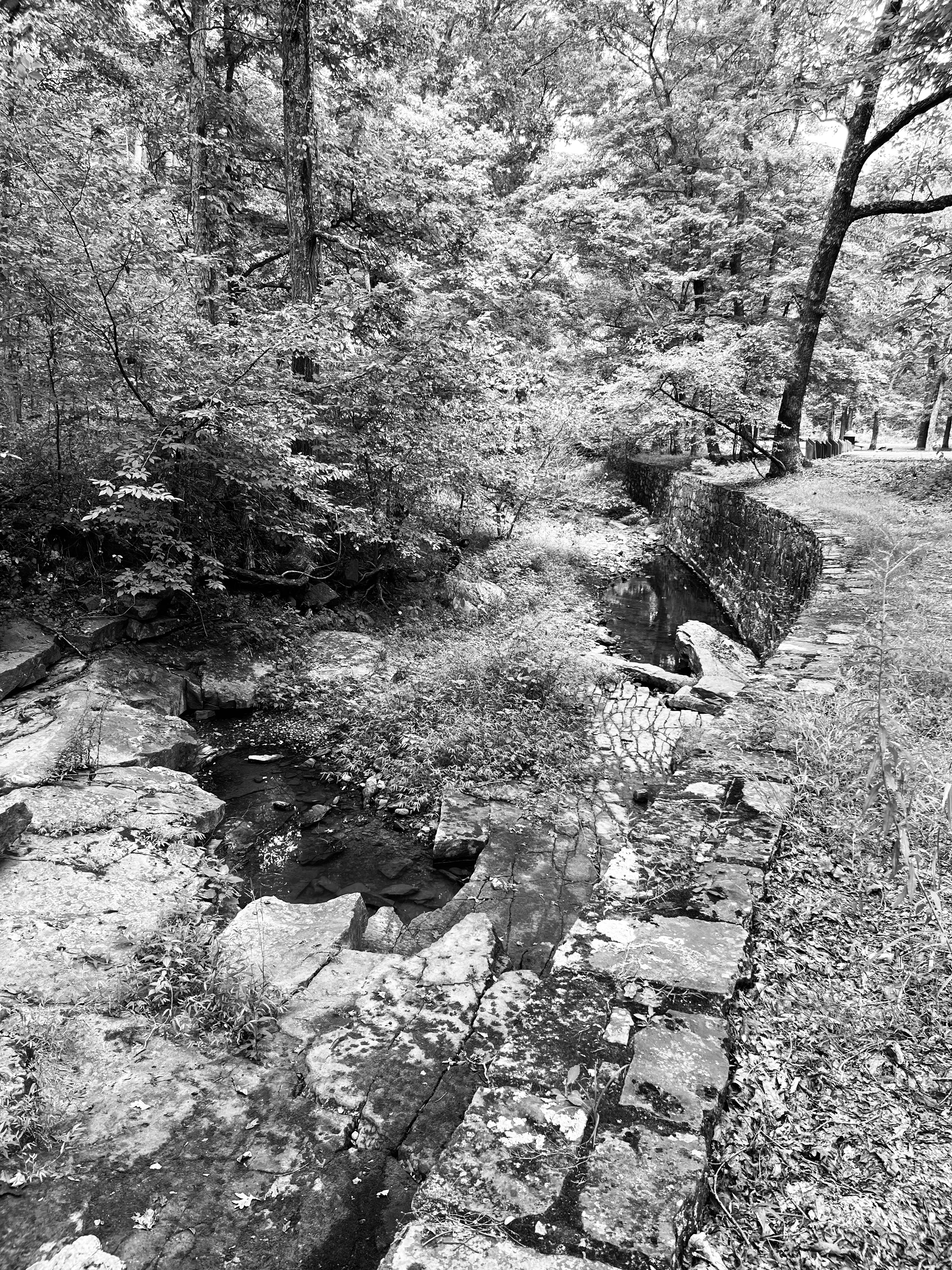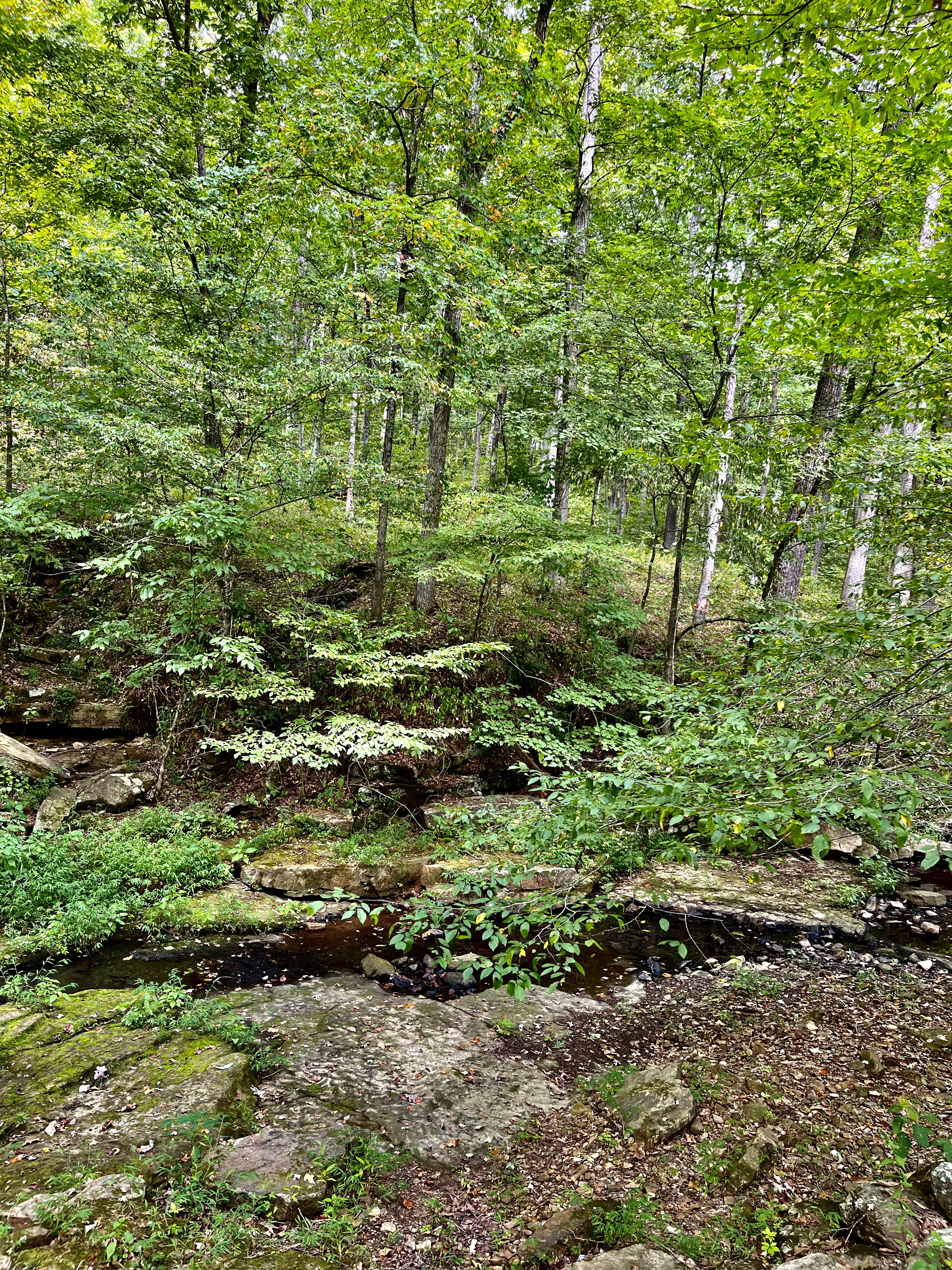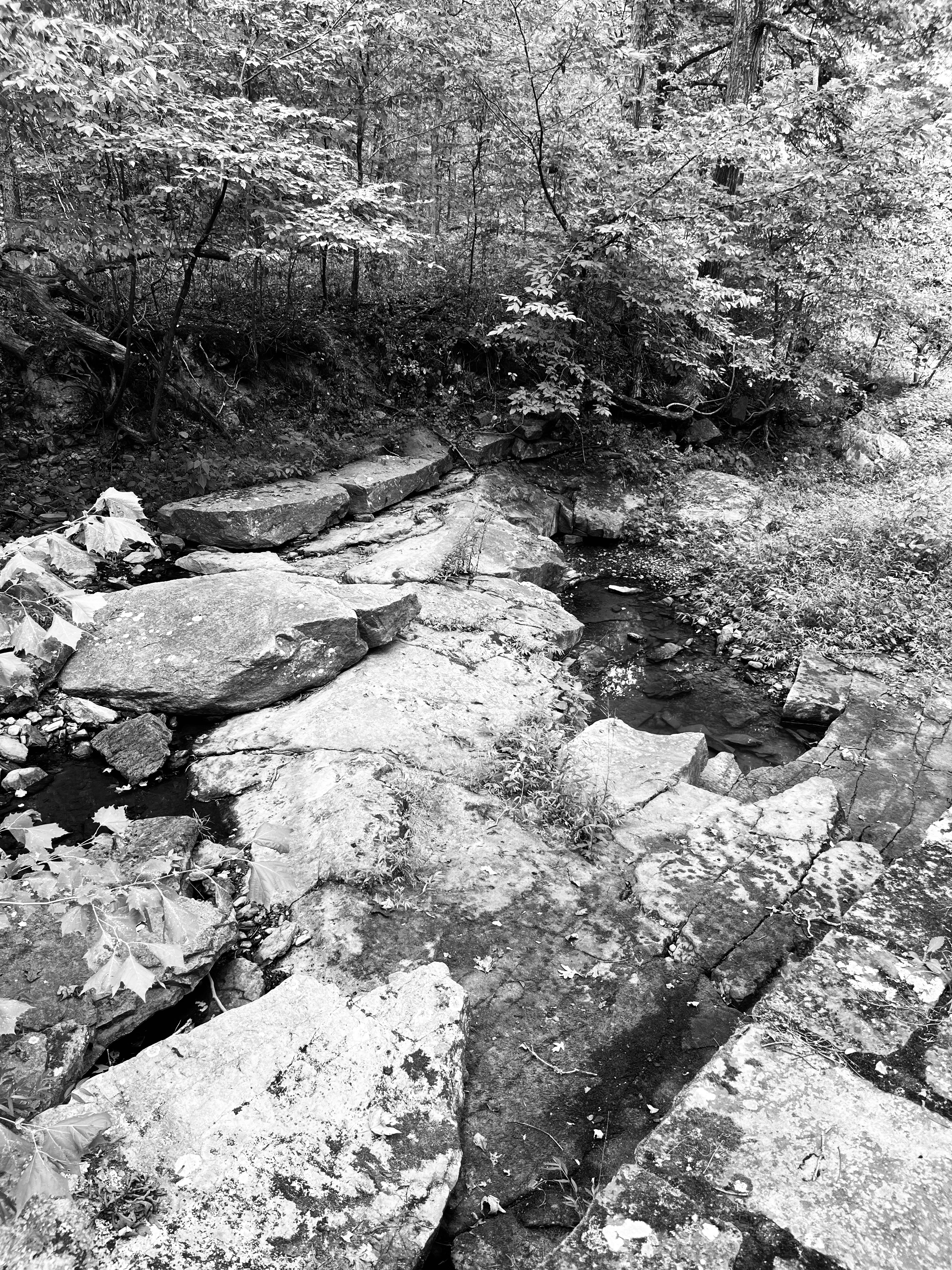 I traveled to Giant City State Park today. It is only September 2nd…but that is good enough for me. Autumn had begun as far as I am concerned. I marvel at the broken boulders in a little creek that I enjoy taking photos of. I relish looking at the stone wall that was built as a retaining wall for the creek. I think of my father-in-law Berl and his twin brother Merle who worked for the Civilian Conservation Corp and aided in building the Giant City Lodge.