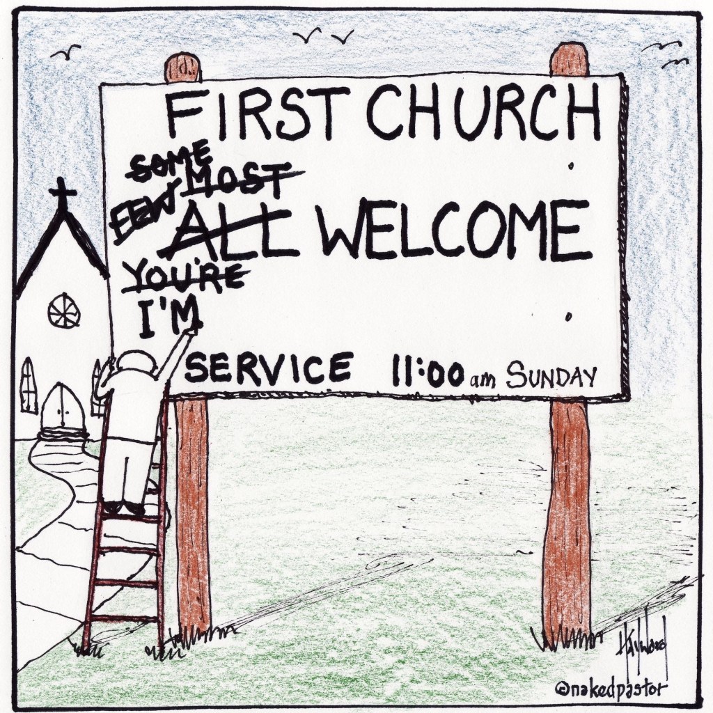 I saw a cartoon by the Naked Pastor the other day where a sheep wearing rainbow colors was sitting by Jesus. The caption read that the sheep was thanking Christ for sitting with him…and Christ responded…’Thank you for sitting with me.’