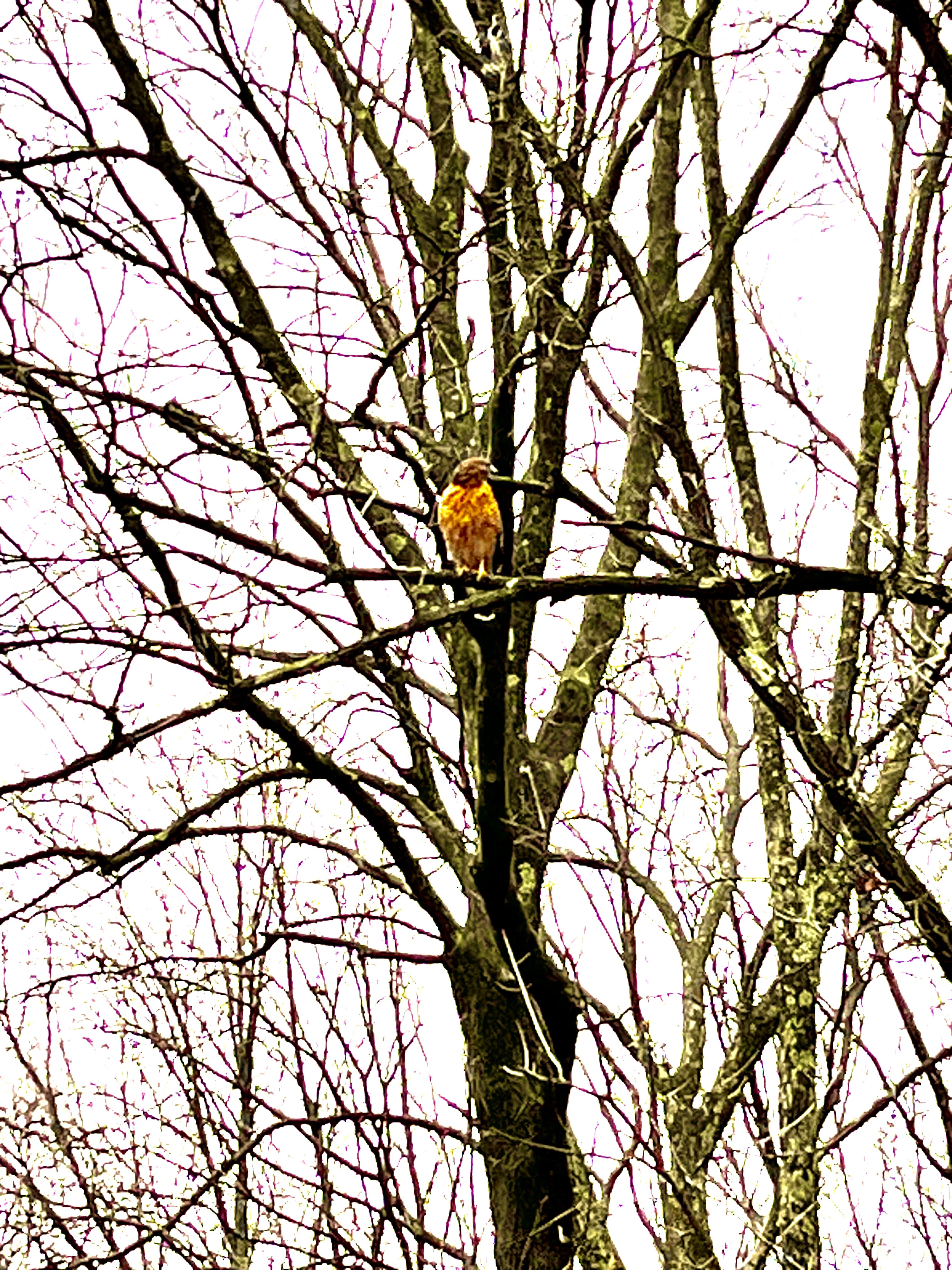 A Hawk saw me as I saw him and soon swooped down to let me know of my violation of his space.