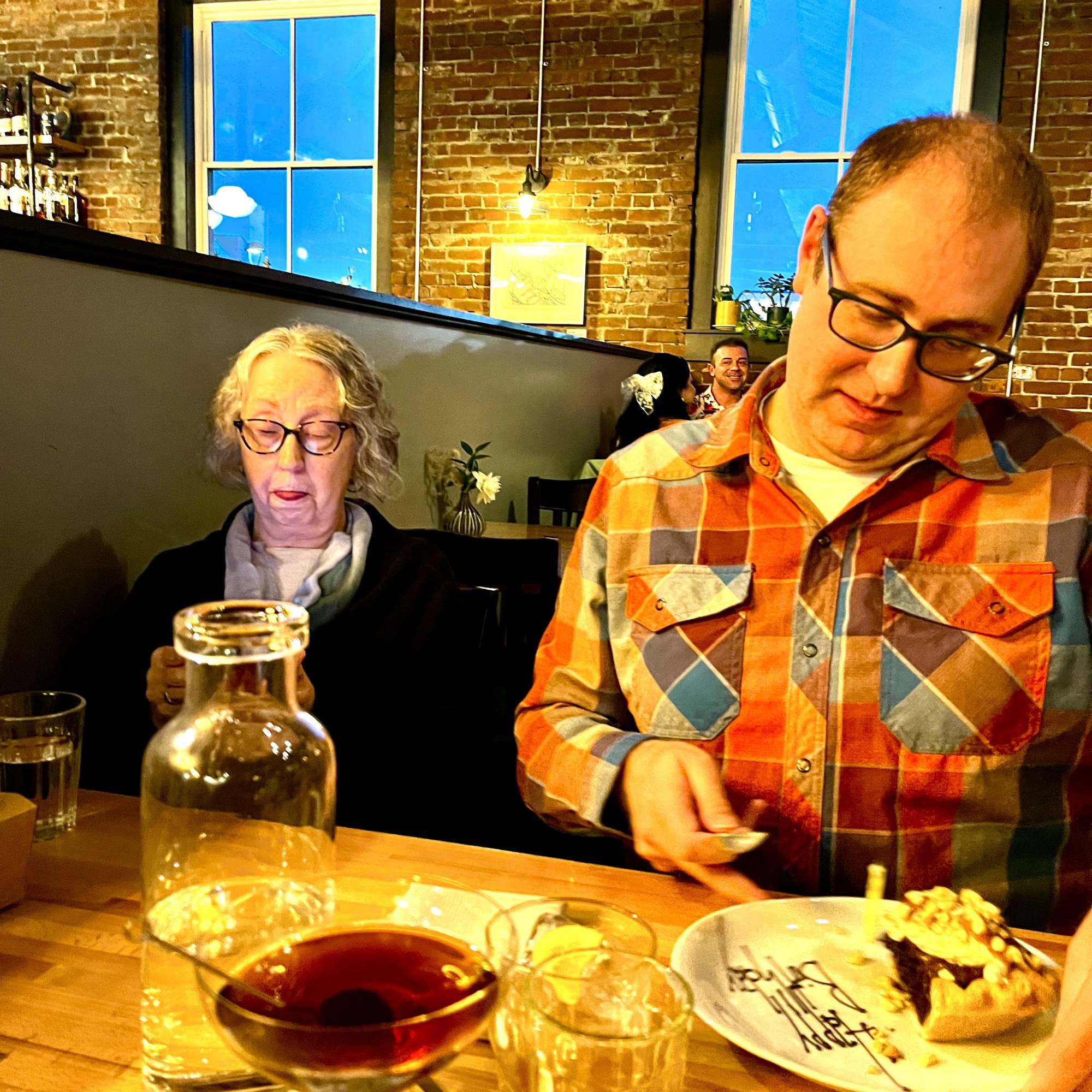 Last night was the beginning of The Holiday with Jonathon’s Birthday Dinner at the Freight House in Paducah, Kentucky. The Shephard’s Pie was the best that I have had in a restaurant. At times I have taken to calling Aaron 42 and Jonathon 40. Where did the time go? MJ and I have been married for over 46 years and are planning on enjoying another Holiday when we reach 50…perhaps another Fatted Calf and a Dirty Martini.