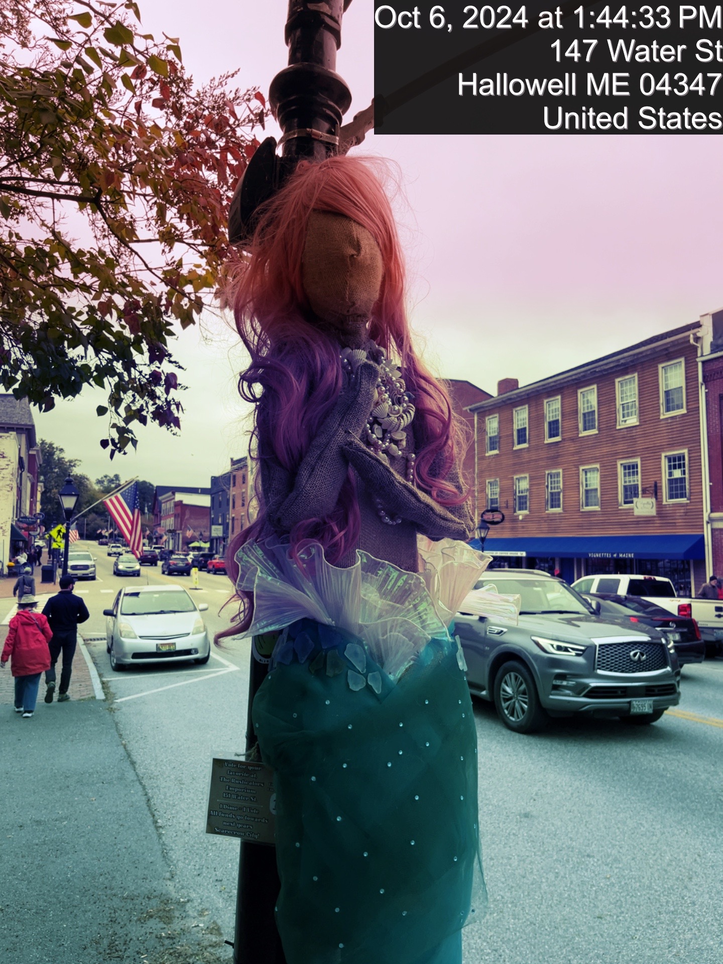 Hallowell was a bit mysterious. A picturesque village with Halloween decorations displayed. It had an old-world air. We were Leaf Peeping and Antiquing. I saw the most delightful Einstein Concrete Sculptor I wish I had purchased. The leaves were beautiful. The peaceful climes of Hallowell were overwhelming.