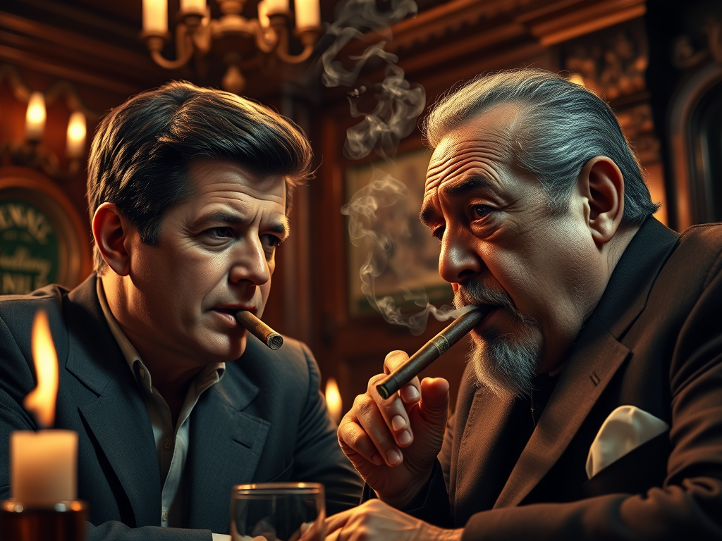 ‘Drinks for the House and Cohibas for all,’ Fidel announced as he walked in. ‘Mr. President may I join your entourage,’ Fidel asked with a long Cohiba protruding from his lips. ‘It has been too long…where is Jackie,’ Fidel asked? ‘We must discuss the present distress before it is too late,’ Fidel proclaimed.