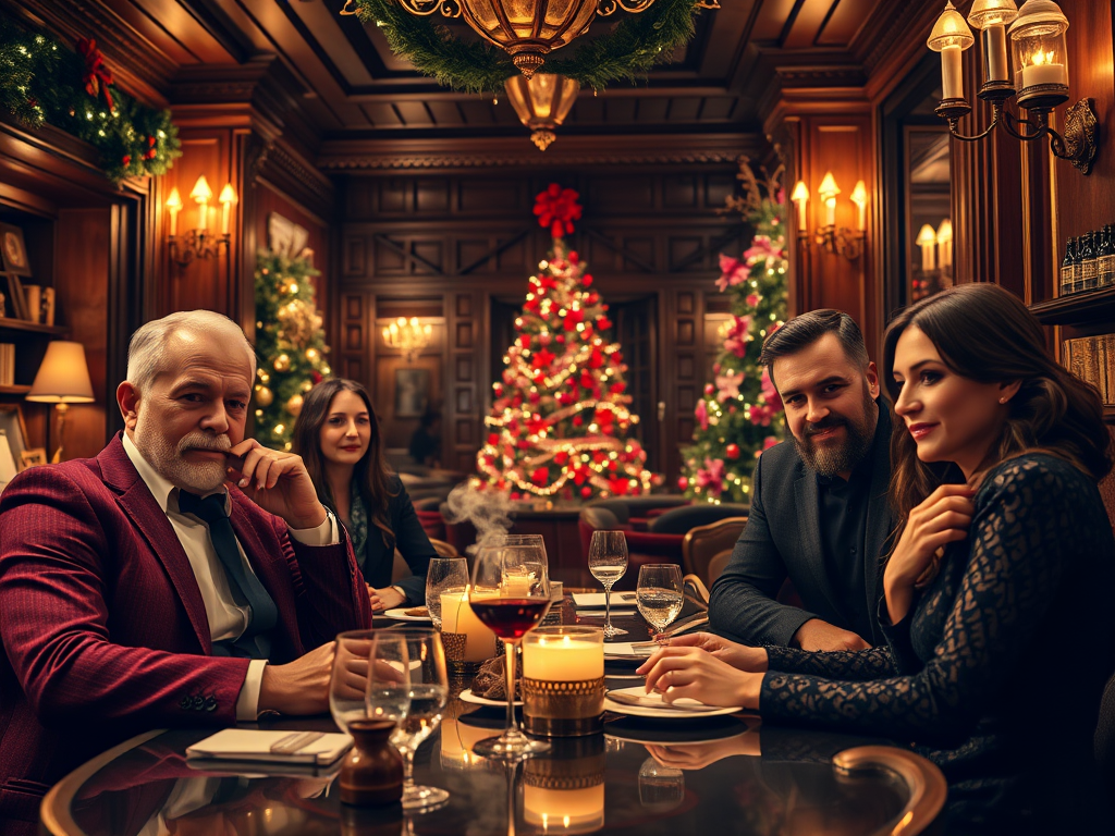 A Christmas Cigar at the Cigar Bar. No ill thoughts, mean deeds, or hurtful words. The path is snow-covered. The Deer Family nods and smiles. The trees are decorated with icicles and snow—not the canned kind but the real thing. Bing Crosby is singing along the sled path. He is wearing a Santa Suit and smoking his pipe, with the smoke encircling his head like a wreath.