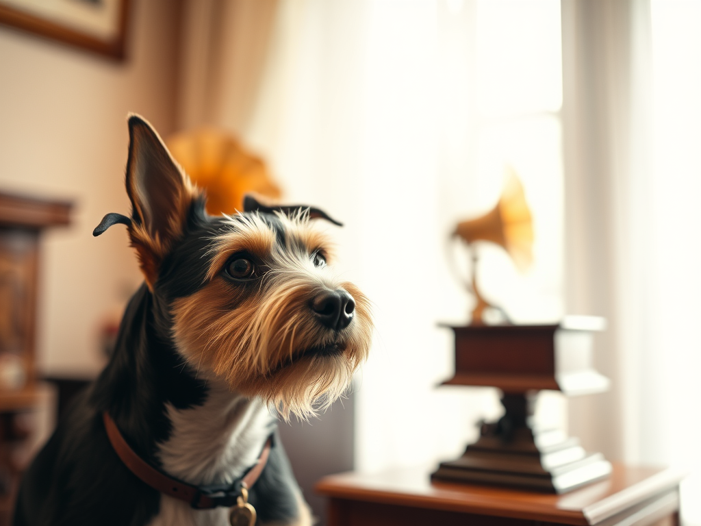 ‘His Master’s Voice is an entertainment trademark used by numerous global sound equipment manufacturers, record labels and entertainment retailers. It is derived from the painting of the same name that depicts a dog named Nipper listening to a wind-up gramophone whilst tilting his head.’ Francis Barrud