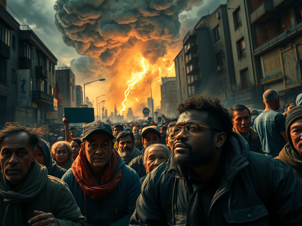 ‘Reports of widespread damage and many deaths are coming into the newsroom,’ News Man said. ‘Millions have sought shelter from the terrible cuts of their jobs and the eliminations of their Social Security retirement,’ News Man continued. ‘Clusters of people now are homeless and hungry,’ News Man observed.