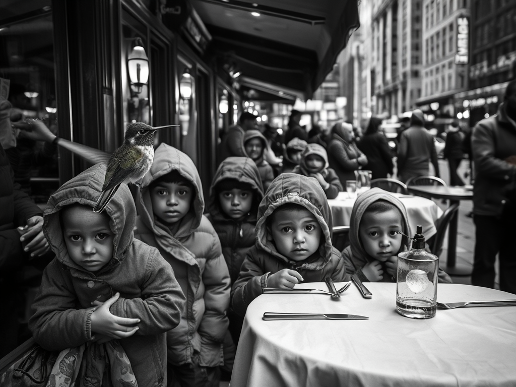 Have you looked at the butterflies? They are lovely in their handiwork. It has been said that the poorest hard-working people leave the best tips at restaurants. Those who labor know what a tip can mean to the ability of their server to pay their bills for the month. The Little Hummingbird is settled next to the homeless children outside the restaurant. He watches as they look forlorn and seek a few pennies to buy something to eat. He wishes he could bring them some sugar water…