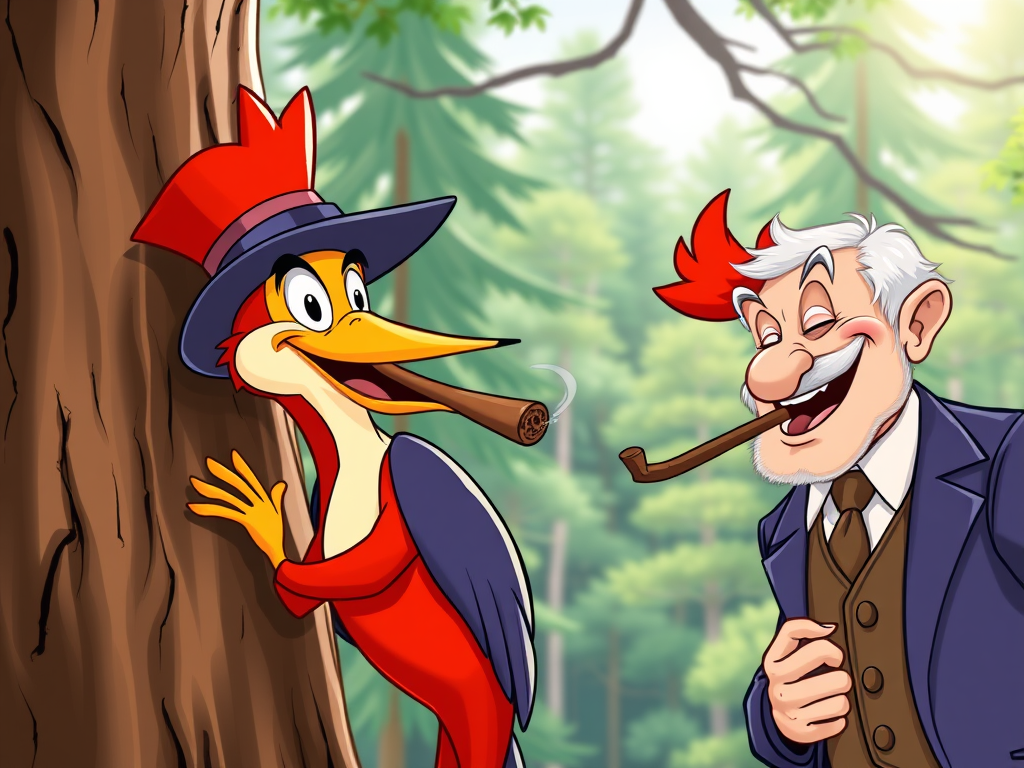 Last month, the sun shone brightly at 7:00 P.M. Now the evening shadows fall. Mr. Woodpecker was busy at his job in the Woods this morning. Tappity Tap Tap rang out. Mr. Woodpecker is singular in his purpose. Nothing stops his daily routine. He dances to the sound of his own Tap Tap Tap.