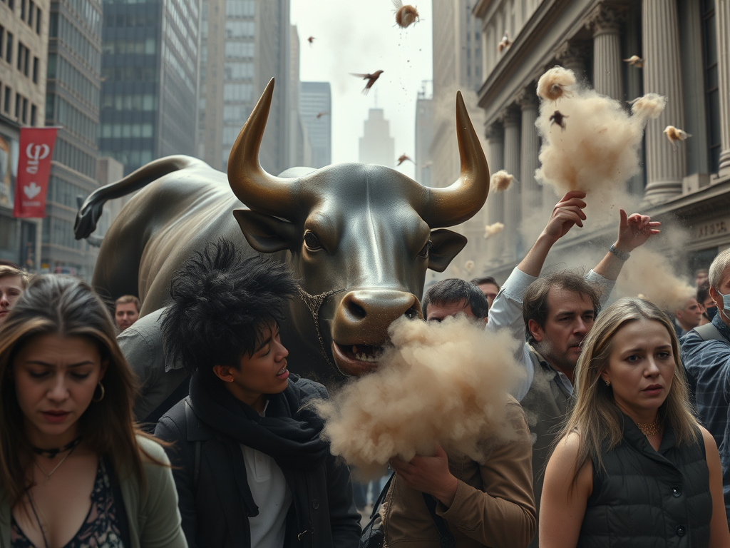 It was so dry, and the dust of discontent spread. The people tried to speak, but only dust came out of their mouths. They feared their water being rashioned. After all, they were in a drought. They had already given up much water and had little to spare. They whispered in corners in the shadows. Who knew where the Emperor’s anger would take them? Those who had protected their money were broke. Little tornadoes cascaded through Wall Street around the Precious Bull. There were tumbleweeds and dust so thick you could not leave your home without a mask over your mouth and nose. People coughed incessantly. Once they had the power to speak, now it took all of their power to breathe.