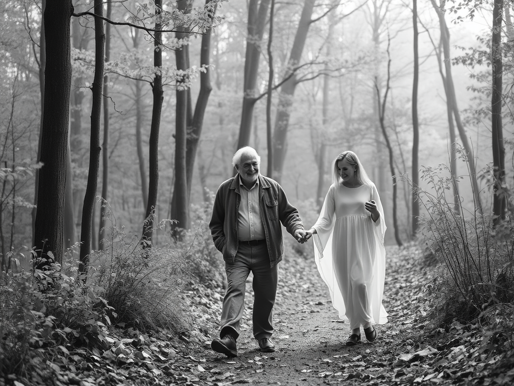 ‘I have lost my way, I fear,’ the Young Man said to the Old Man. ‘What day of the week is it?’ the Young Man asked. ‘Why, it is Wednesday of course,’ the Old Man answered with a wry grin. ‘I thought days running together was a malady of the old,’ the Old Man laughed. ‘I come to the Woods almost every day and have never seen you here before,’ the Old Man commented. ‘Usually, a rainy day like this keeps everyone home,’ the Old Man chuckled.