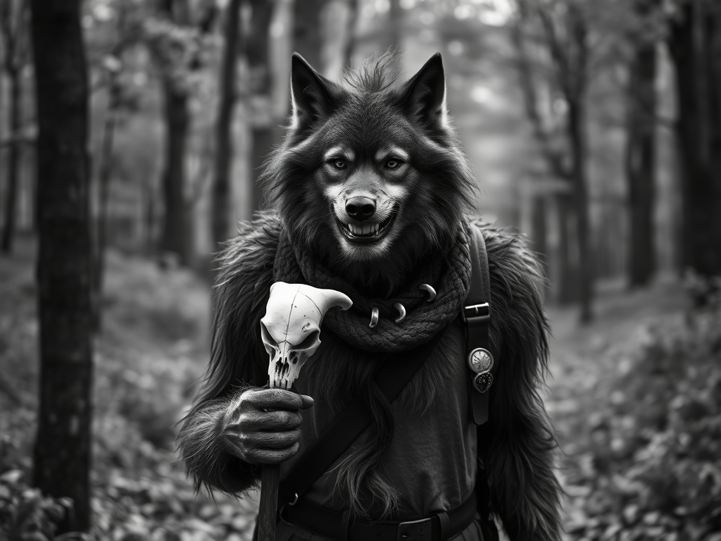 ‘Well, I love the Woods as well and all that it has to offer,’ the Wolfman said. ‘I am well read in the classics and walk with a gold-plated walking stick with an ivory skull’s head on top,’ the Wolfman noted. ‘The conflict with our human and animal nature is tricky at times,’ the Wolfman offered. ‘I like to moon watch,’ the Wolfman said with a smile. ‘When leaders proclaim that hurting other humans is good American and what the Bible teaches, I am saddened, the Wolfman quietly observed. ‘The Teacher told us to love others as we want to be loved,’ the Wolfman explained. ‘Mellow thoughts produce mellow actions,’ Wolfy said with a laugh.