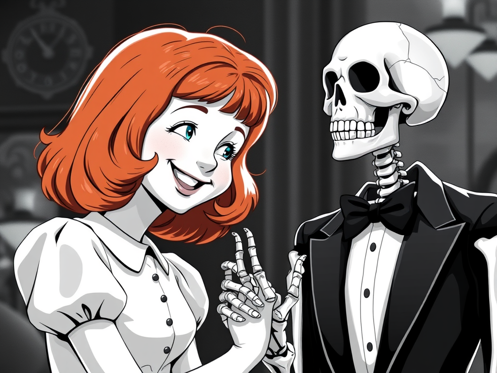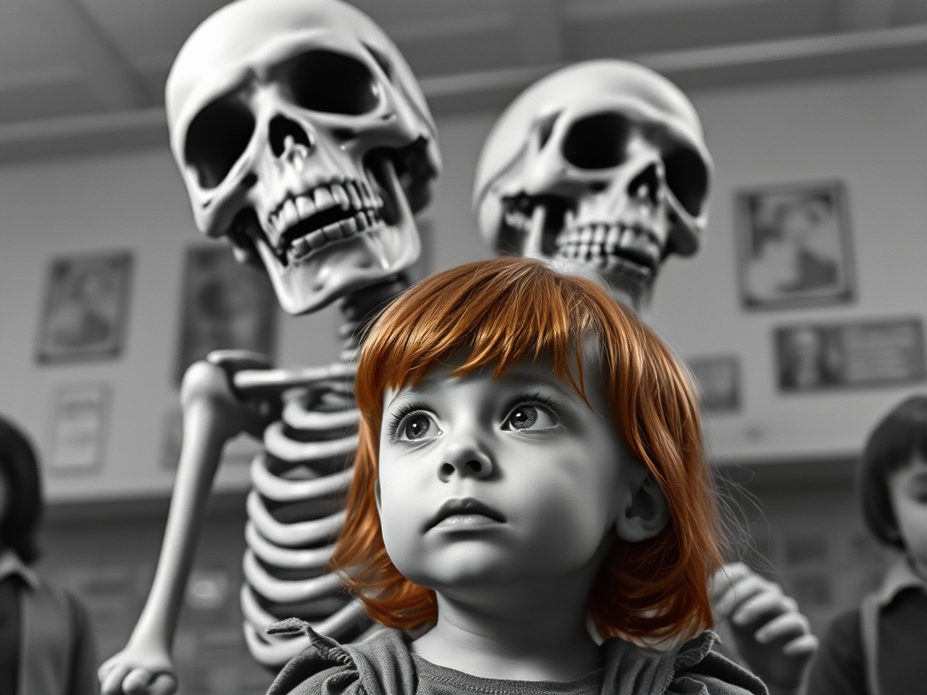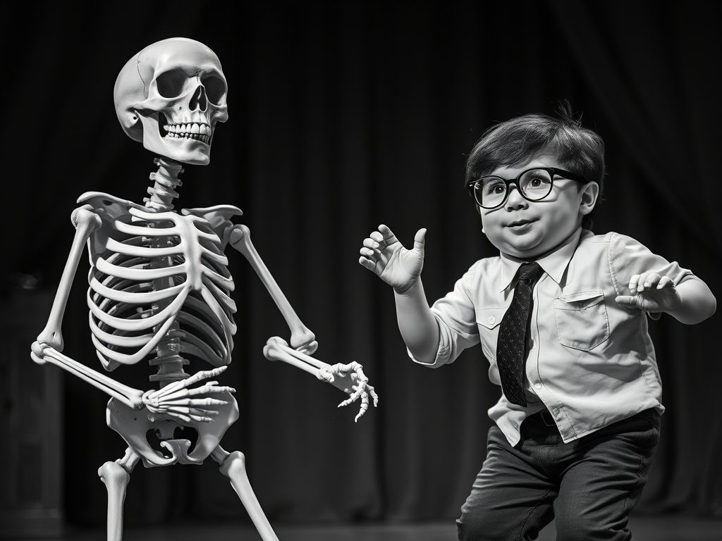 ‘Have you noticed that the skeletons and vampires Frankenstein and Dracula are ten feet tall in the neighbor’s yard?’ Jane asked. ‘When did the Halloween decorations get so big?’ Jane continued. ‘In our youth, we felt lucky to have a carved Jack-O-Lantern on the front porch,’ Jane laughed. ‘I saw a humongous skeleton once and have never determined if it was real or a dream,’ Jane said with a shaky voice. ‘The Big Bag Of Bones was standing behind Hillcrest School when I took the trash out for Mrs. Blackwell,’ Jane noted. ‘I was small but he seemed ten feet tall,’ Jane whispered. ‘He talked like a professor and greeted me warmly,’ Jane said. ‘His smile looked like piano keys,’ Jane observed. ‘BOB asked me if he could be in the Halloween School Play,’ Jane said. ‘He said he had theatrical experience on Broadway,’ Jane laughed. ‘BOB said that he had met the prophet Ezeikel in the Valley of Dry Bones and that he was a good chap,’ Jane mused. ‘BOB began to dance a soft shoe without the need of the taps,’ Jane winked.