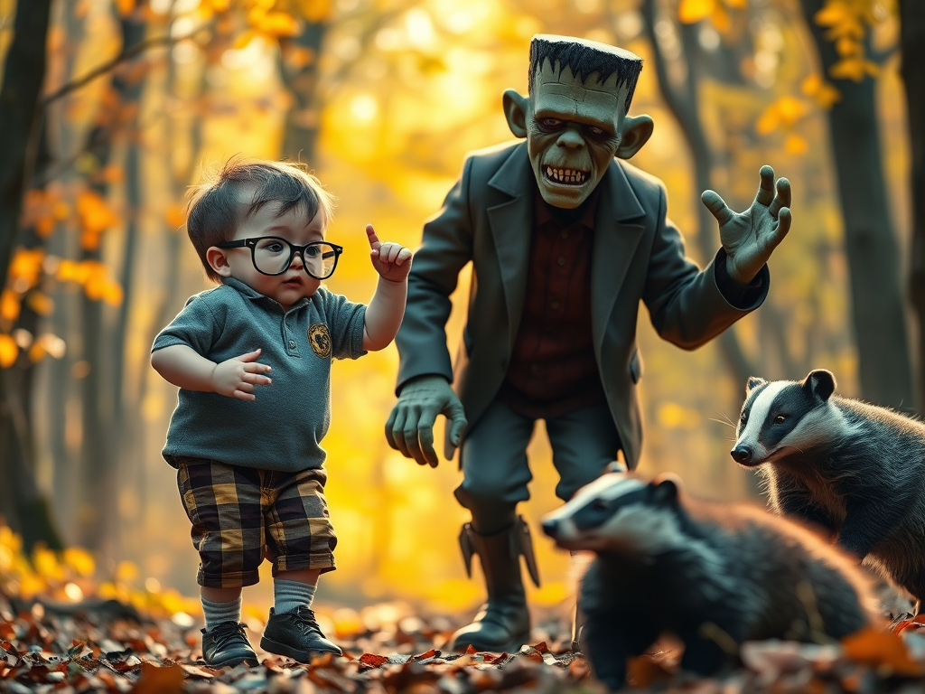‘I have a mission to enjoy the remainder of the fall,’ Chet proclaimed. ‘It is my favorite season of the year,’ Chet continued. ‘My birthday, Halloween, Thanksgiving, and Christmas rolled into one fantastic season,’ Chet danced on one foot and then the other. ‘There is joy in the Autumn Adventure,’ Chet sang to the top of his lungs. ‘It is between Halloween and Thanksgiving, which affords us an excellent opportunity to still invite Frankenstein and Wolfman to our Thanksgiving Dinner,’ Chet laughed a lusty laugh. ‘I have it on good authority that they have nowhere to eat Thanksgiving Dinner and that they would love to come to our celebration,’ Chet assured with a wink. ‘Frankenstein will bring his son and his blushing bride, while Wolfman will bring his new bride, who is a movie star,’ Chet said. ‘We will have a grand time in the Woods with Badger and Mole Toad and Rat,’ Chet announced.