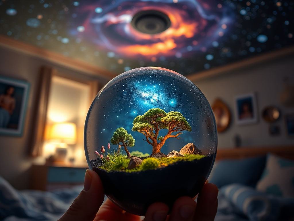‘Come to dinner, my dear, we will decide what to do with your school project after supper,’ Mother said. ‘The humans are a dissatisfied lot,’ Mother continued. ‘Dad bought the Earth at the Universal Box Store on Jupiter and thought you could do something with the creatures in the shadows.’ Mother said. ‘Your father thought the humans would enjoy his projections of the universe on the bedroom ceiling,’ Mother noted.