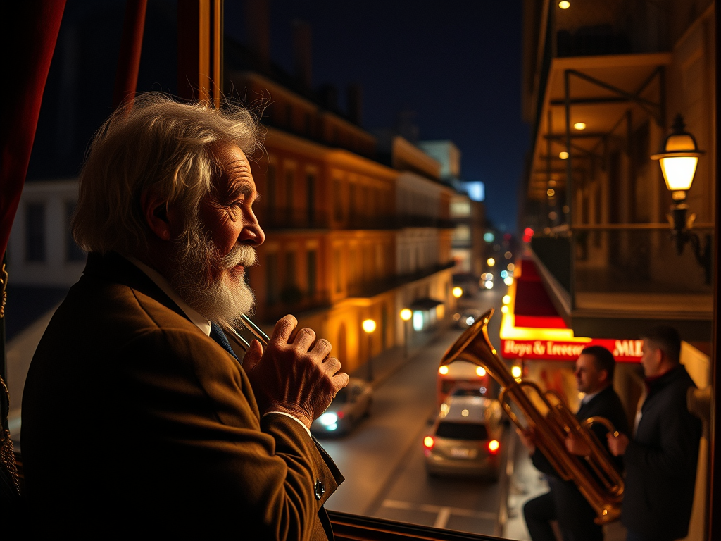‘Where is the music coming from?’ the Old Man thought. ‘A Brass Band was leading a processional down Royal Street at midnight,’ the Old Man said to himself. ‘Everyone is happy and full of joy and peace…no fear or dread,’ the Old Man considered. ‘
