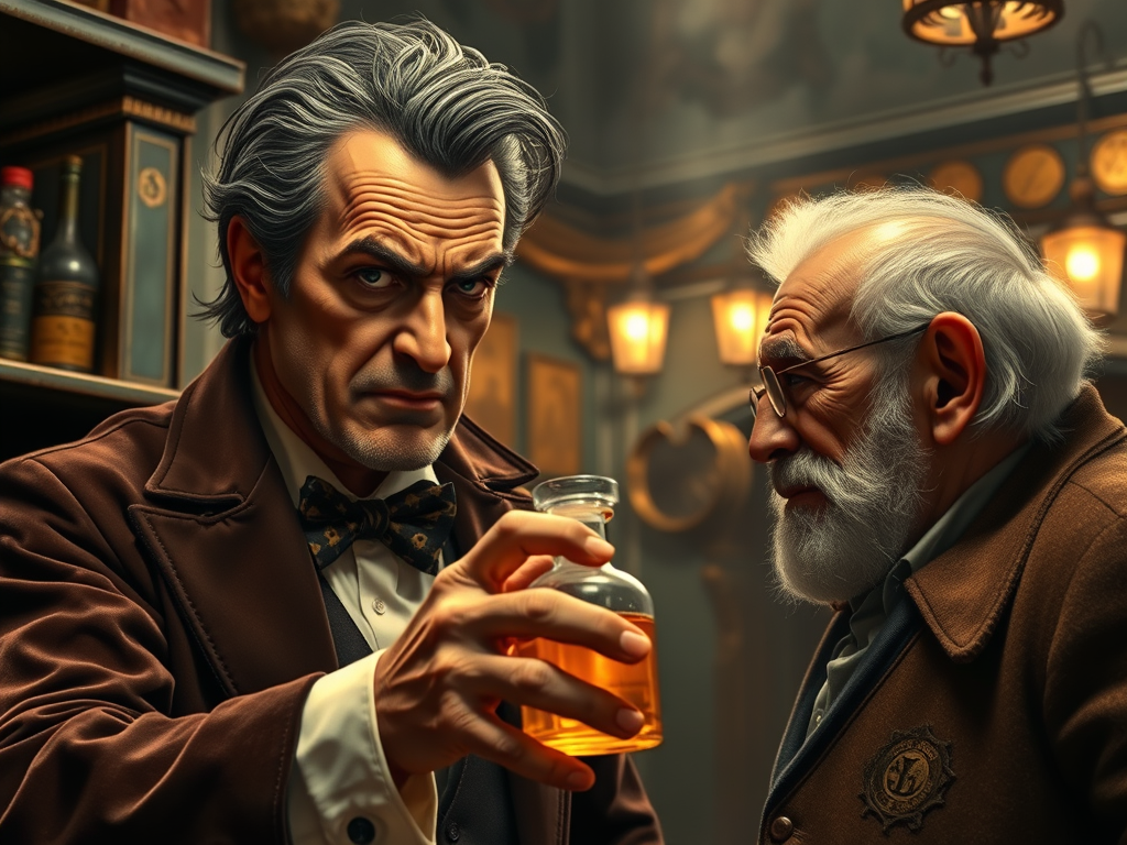 ‘I am pleased to meet you as I have heard of your wisdom across the land,’ the Smooth Man said with a winning grin. ‘I have been worried regarding your aging and slowing down of mobility,’ the Smooth Man continued. ‘I have an elixr that I will give you if you like,’ the Smooth Man offered. ‘It is the same potion that the President and his cabinet use daily to stand up to the demands of Policital life,’ the Smooth Man offered with a little dance. ‘After they take a shot in the morning they say they feel invincible for the entire day,’ the Smooth Man laughed and winked. ‘I offered my brother Jesus the elixr but he chose not to take it as he is in to holistic medicine,’ the Smooth Man said with a smile. ‘If he had listend to me he would have been the king of the world rather than a pleasant memory,’ the Smooth Man said. ‘Stick with me kiddo and we will go places together,’ the Smooth Man promised with a little dance…
