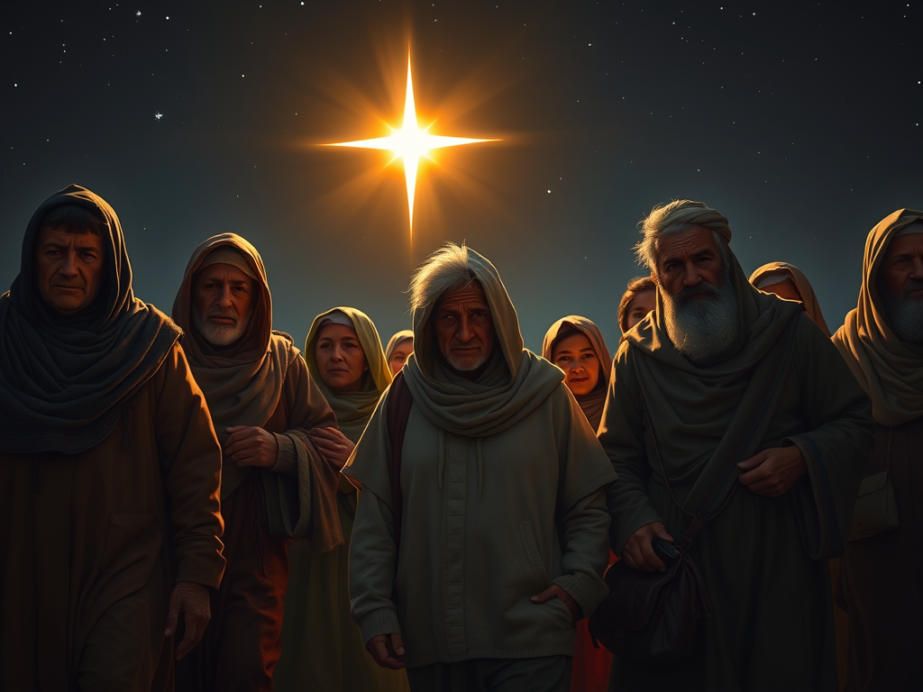 So we are on the journey. Some of us have been walking for a while. Others are new to the trek. Each year, we renew our commitment to find our way home. We have been a bit lost. The city lights and the joys of influence and money cloud our eyes. If we make more, we will have more. We start out wanting more. The more we say about society’s goals. Give us deeper pockets, the funeral director ordered funeral suits for his clients. The Star shines bright in the Christmas sky.