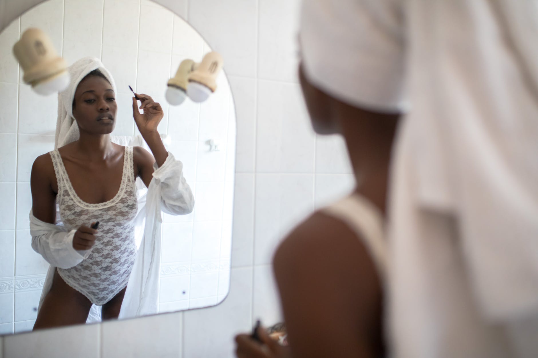 woman in white top wearing white towel