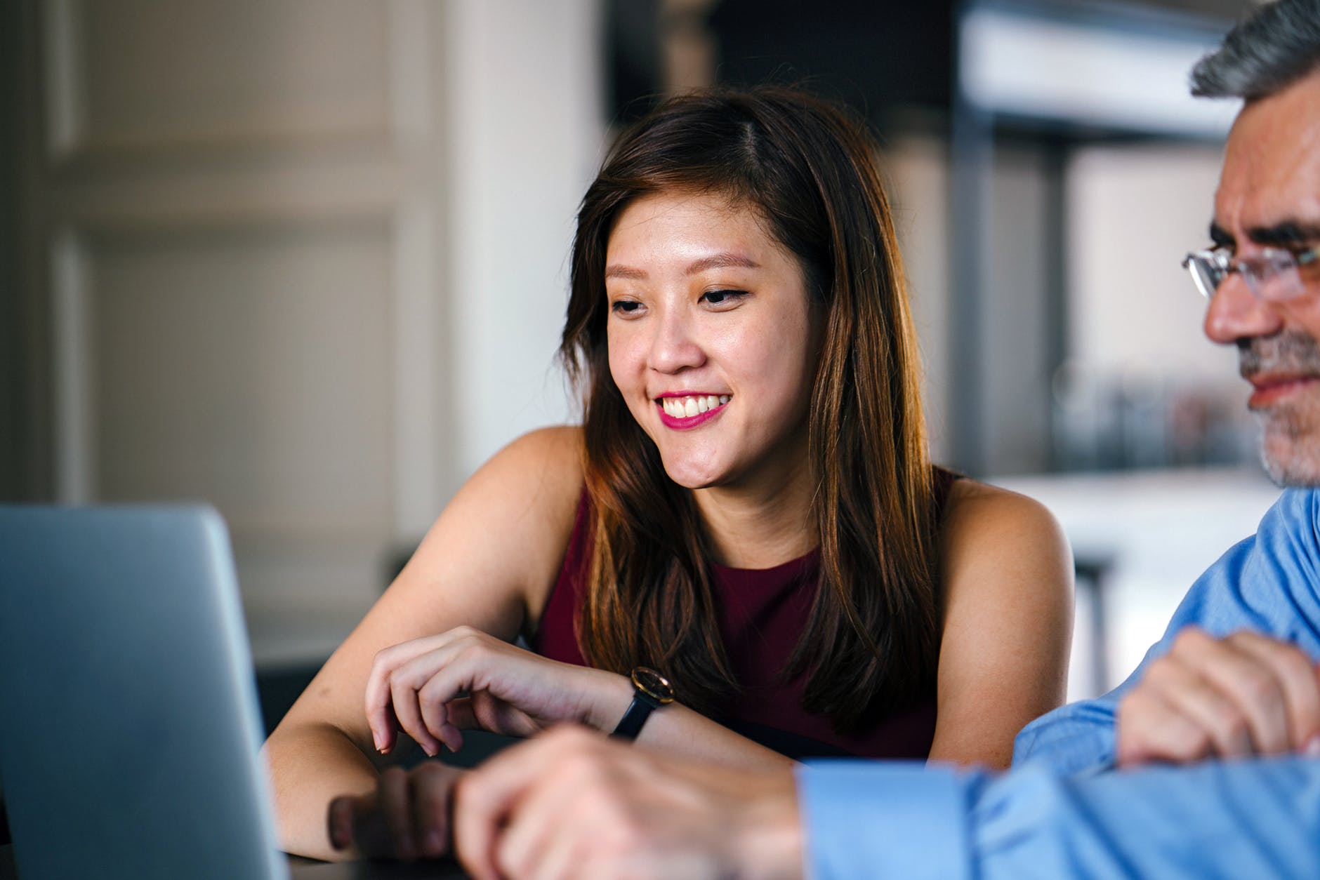 woman and man looking at laptop