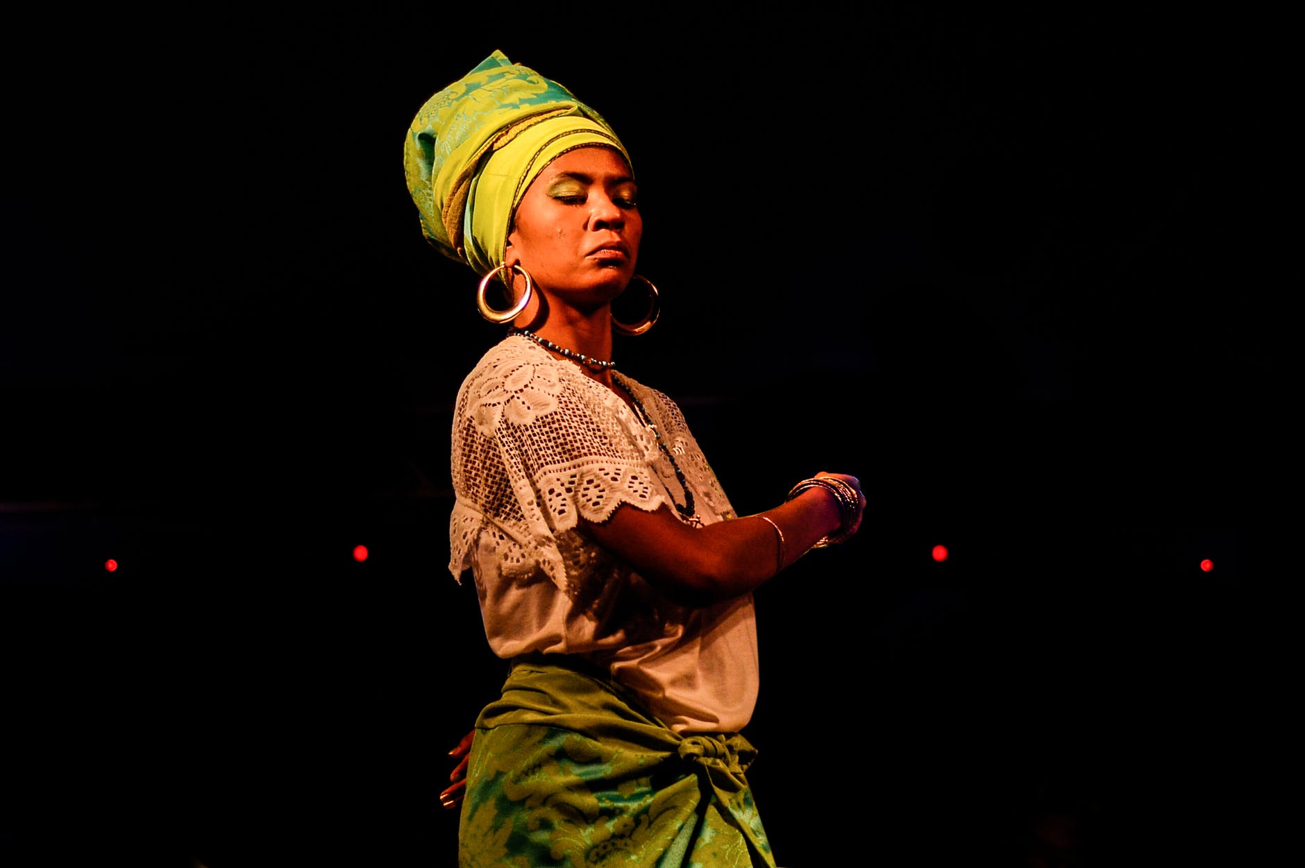 woman dancing near lights