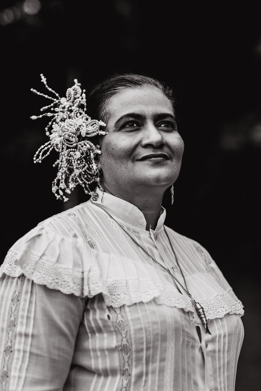 grayscale photography of woman