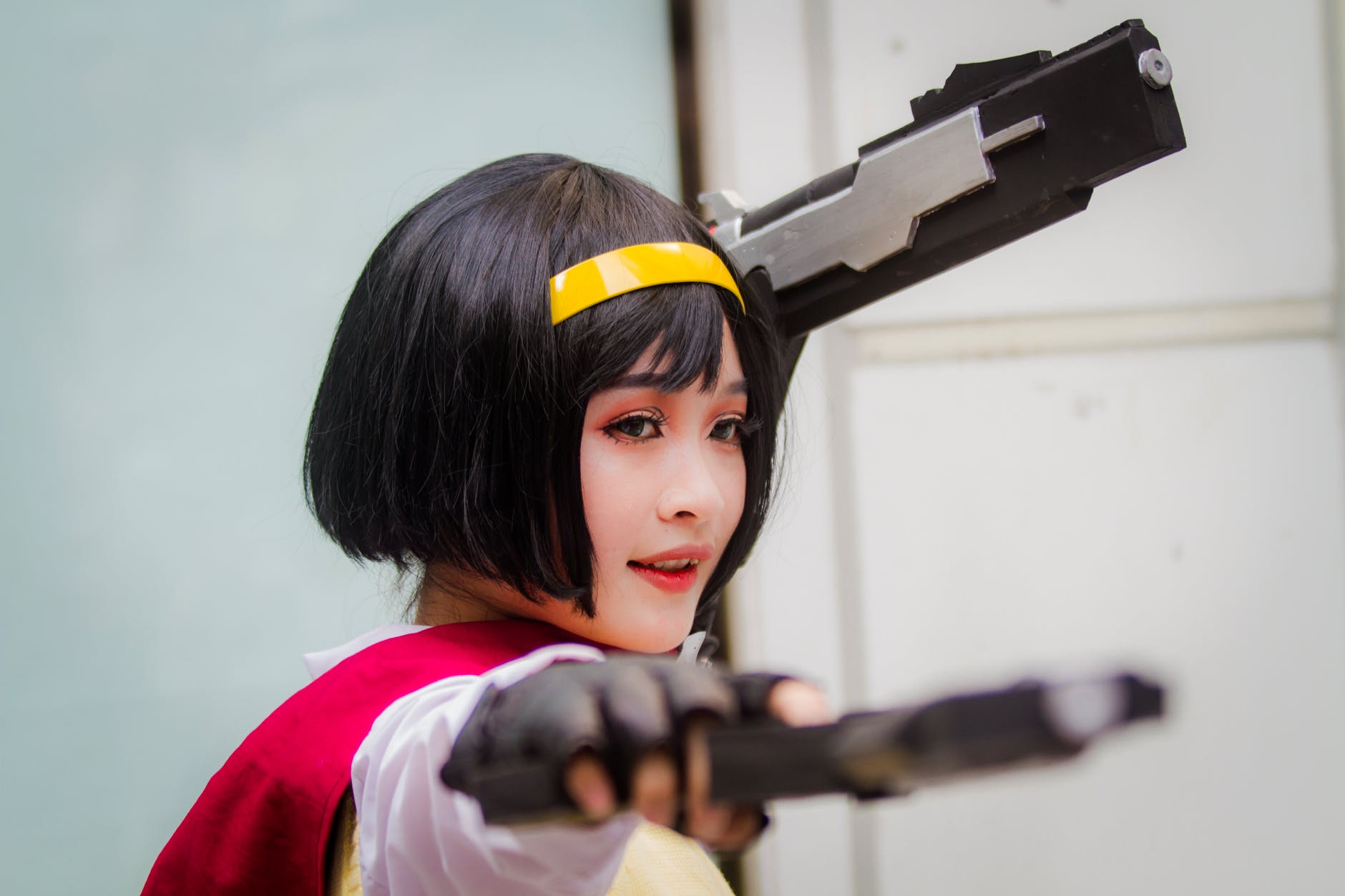 photo of woman holding toy guns