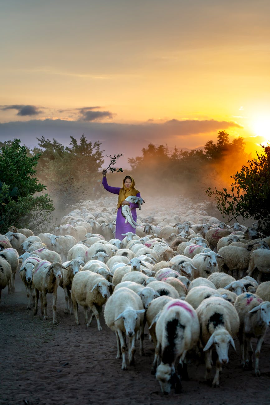 photo of woman holding lamb